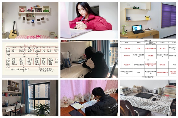 线上学习的效果和学风的保障很大程度上取决于学生的自我管理、自我教育和自我监督的能力。健康自律活动除了家庭卧室内务整理比拼外,还包含家庭学习计划展示等。活动一开展,便得到家长和学生的积极响应,让学生从思想上、行动上都真正开始进入学习状态。同学们按照学校作息时间进行线上课程,以学校宿舍标准要求内务水平,在居家学习期间恢复作息,真正做到“停课不停学”。