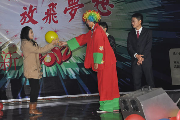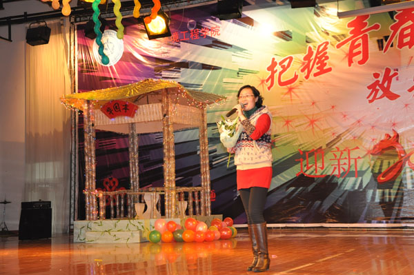 晚会在别具一格的电光舞表演中拉开了帷幕,动感的音乐、欢快的节奏、现代感十足的舞蹈迅速将现场的气氛带动起来。随后土木学子们表演的歌曲串烧、秦杨等同学用民族乐器演奏的《荷塘月色》等节目都凭借各自优势赢得场下阵阵掌声。钱周丽、许慧同学表演的小品《我要当明星》,幽默的语言、诙谐的表情,逗得现场观众捧腹不已。戴清、黄远明老师合唱的歌曲《我要飞得更高》豪情万丈,学生会同学表演的《舞动青春》编排独到,更是将晚会现场气氛推向了高潮。在中场互动环节,观众们积极参与,许多同学都得到了土木与环境工程学院赠送的小礼品,特等奖的同学还获得了手机一部。进入下半场,观众的热情依然高涨。魔术师阿飞的缩骨功表演,给大家带来耳目一新的感觉,领略了真正魔术师的风采。魏雅萍老师演唱的豫剧《花木兰》选段,让现场观众充分领略了民族戏曲的迷人魅力。土木学子的走秀节目《青春脚步》,将文明礼仪教育融入节目当中,寓教于乐,特点突出。江影等同学表演的校园小品《0101社团招新》贴近新生生活,获得了在场观众的一致好评。精彩的演出不时赢得场下阵阵掌声,将晚会推向一个又一个高潮。