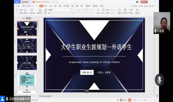 为给学生提供专业的学习方法,发挥榜样的感召力量,外国语学院相继邀请了校内外的专家、教授和优秀学子,分别就大学生职业生涯规划、外语学习技巧、学科竞赛和奖学金申请及获得等方面开展了“与教授面对面”和“学姐学长有话说”系列活动,根据实际,采用线上线下相结合的方式,搭建多层次平台让老师与学生、学生与学生进行探讨与交流,培养学生的求知、好学精神。