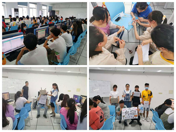 实训课上,授课教师以指导学生完成创新实物和创业项目计划书为主线,将创新思维方法训练、创新创业实践知识巧妙贯穿其中,引导学生通过发现问题、解决问题、优化项目,探索创新创业的“最佳实践”。比如,在创新课程上,授课教师带领学生通过创新素质测评和KSA分析来认知自我与创新,经过领袖竞选和组员招募组建十个创业团队,完成创意头脑风暴、六顶思考帽等进行逆向思维、平行思维等创新思维方法训练和创新实践方法论学习;在创业课程上,授课教师带领创业团队从客户痛点出发,围绕创业项目,分别学习和训练环境市场分析、产品设计与市场测试、商业模式与创新、营销策略、融资与风险等环节,最终完成项目计划书。