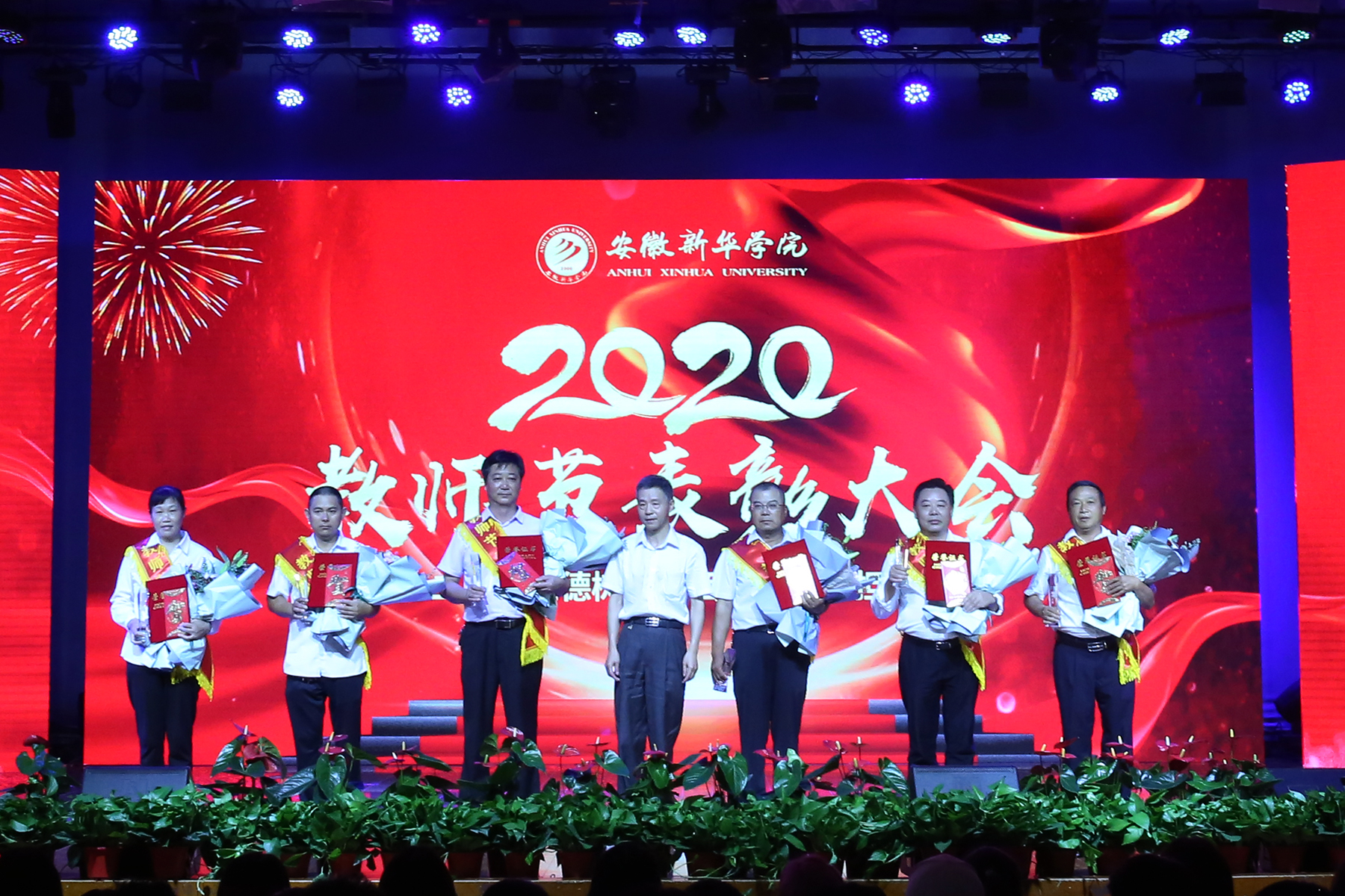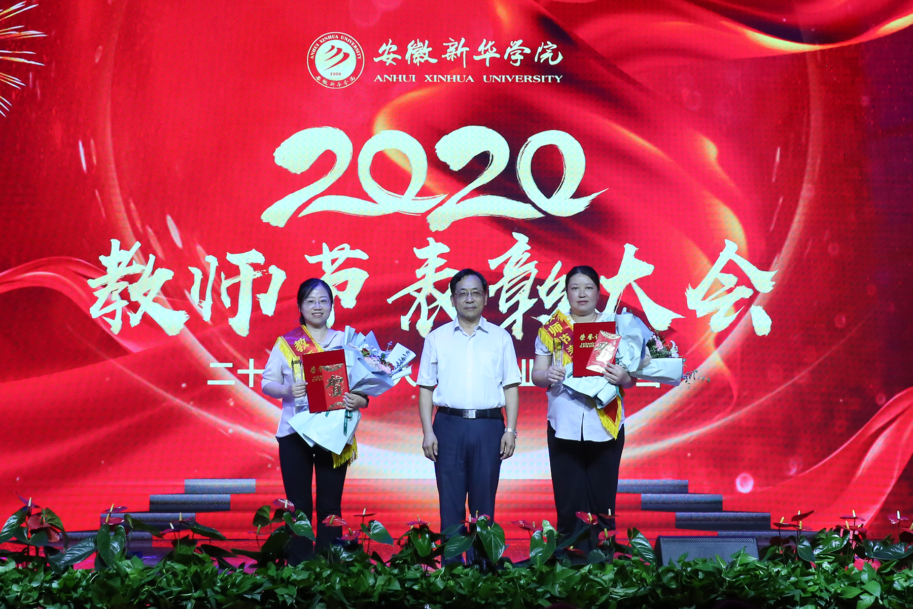 本网讯(通讯员:王伟灿 摄影:翟漱文、陈洞庭)金秋九月,硕果飘香;为人师表,无限荣光。正值第36个教师节来临之际,为表彰献身教育事业、育得桃李芬芳的新华教育工作者,9月9日下午,“二十载立德树人,百年业奋进担当”2020年度教师节表彰大会在beat365官网大礼堂举行。本次受到表彰的老师包含省级教坛新秀、省级教学名师,省级以上教学竞赛、优秀线上课堂教师,beat365在线唯一官网登录“明德奖”获得者在内的共计79人。新华集团及学校主要领导,各职能处室、二级学院的师生代表们参加了大会。