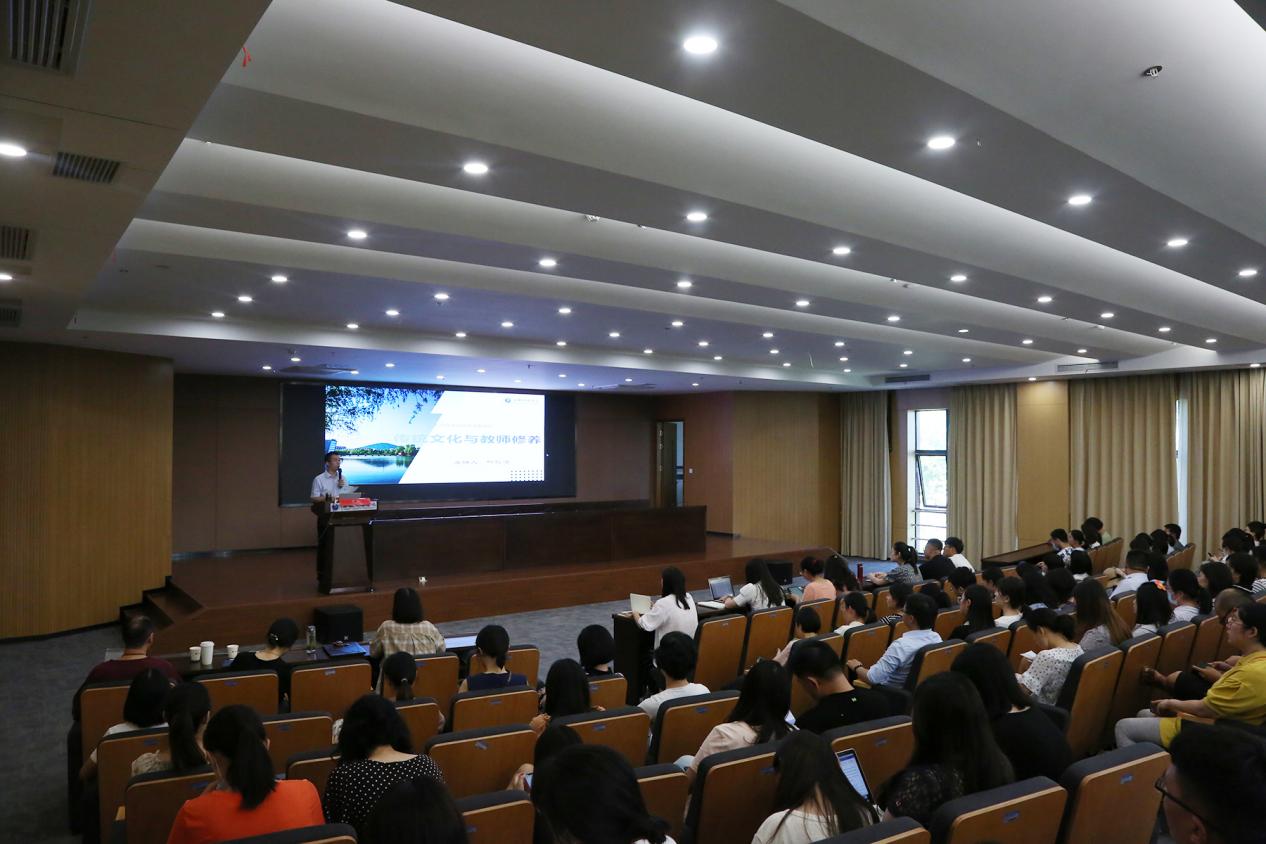 本网讯(通讯员:颜芬芬)9月7日下午,beat365官网在科研楼多功能厅举办2020年度教师节系列活动——“师德师风专题培训”。传统文化学者、作家,新华集团企业文化研究院院长,新华学院国学研究院院长叶观澜,应邀作了“传统文化与教师修养”主题讲座,本次培训由副校长方纯洁主持。各教学单位教师代表参加了活动。