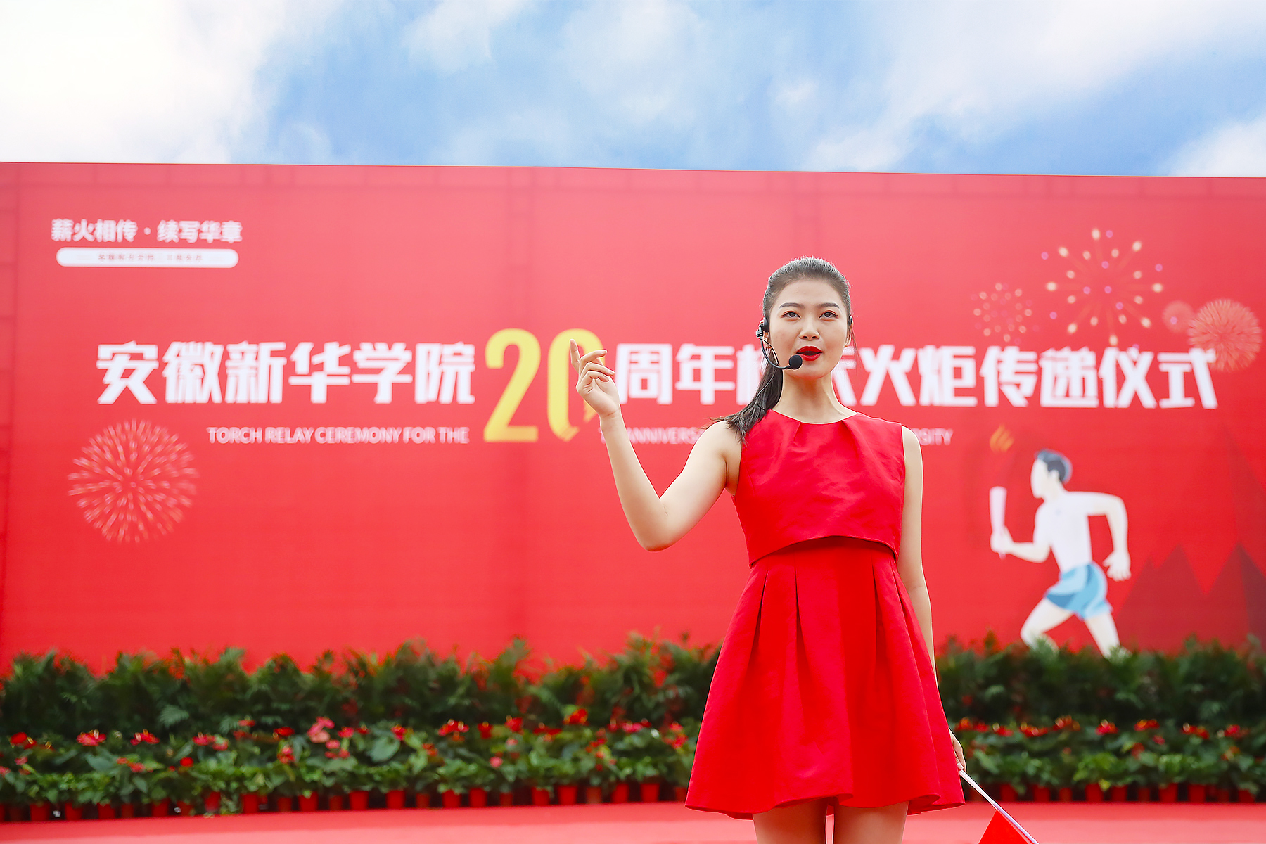 一场青春飞扬的快闪为火炬传递仪式拉开了序幕。随后,邸建伟致辞:“本次校庆活动是学校面向新的发展阶段,回顾历史,总结经验,展示成就,谋划未来的重要契机,因此也具有特别的意义。”他向二十年来辛勤耕耘、竭诚奉献的全体新华人致以最崇高的敬意,并祝愿学校的明天更加美好!