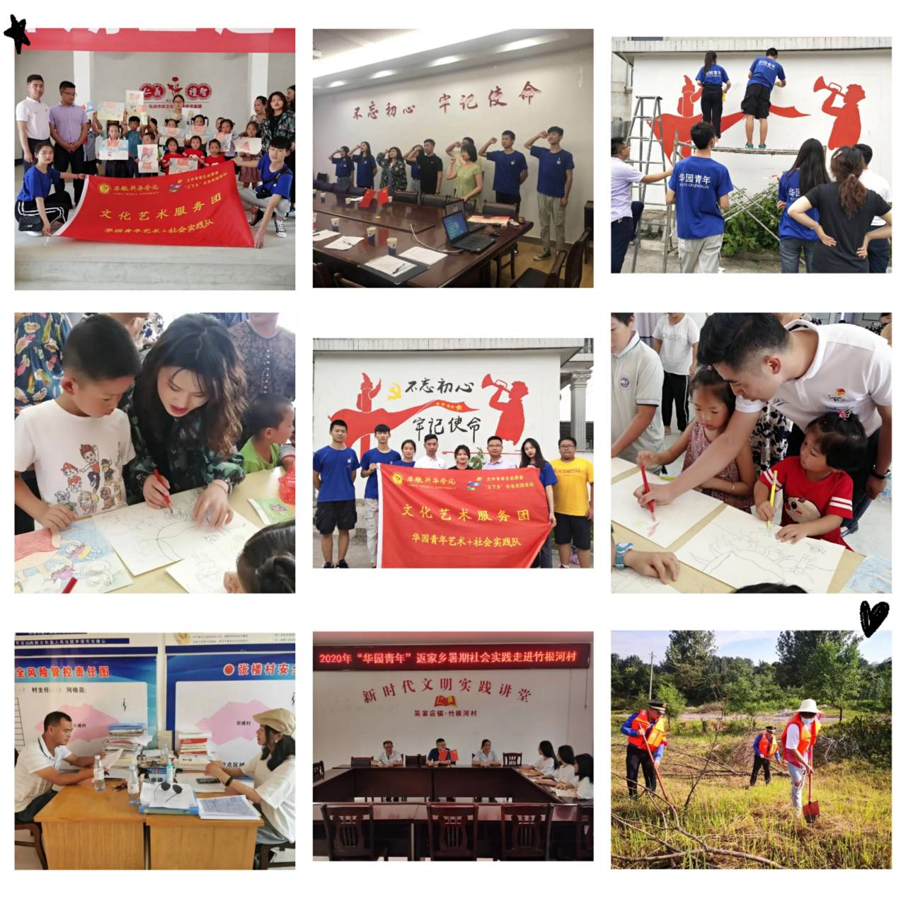 “华园青年艺术+”社会实践志愿服务团队隶属于beat365在线唯一官网登录艺术学院团总支,团队成立于2019年初,团队秉承“专业促进实践,服务共建美好”的志愿服务理念,2年来,他们深入贫困地区进行艺术支教、文化扶贫;他们走进社区开展文明共建、服务社会;他们回报家乡助力美好乡村建设;他们在疫情防控下开展“助农助产”、“云端助学”;他们在洪涝灾害中“抗洪防汛”、调研走访......团队曾在2019年荣获省级“三下乡”优秀实践团队、校级优秀组织奖、优秀调研报告、多名成员荣获先进个人等;以实践为基础,申报《探究艺术+文化与乡村发展的新模式》项目在安徽省第五届互联网+大赛红色逐梦之旅赛道中荣获省级三等奖。在2020年校级“榜样的力量”系列评选中荣获校级优秀“志愿服务团队”奖项,多名同学获评先进个人、校园十佳志愿者等称号;团队事迹多次被央广网、凤凰网、安青网、合肥人民政府网、新华网、青年报、搜狐教育网等主流媒体的关注与报道。