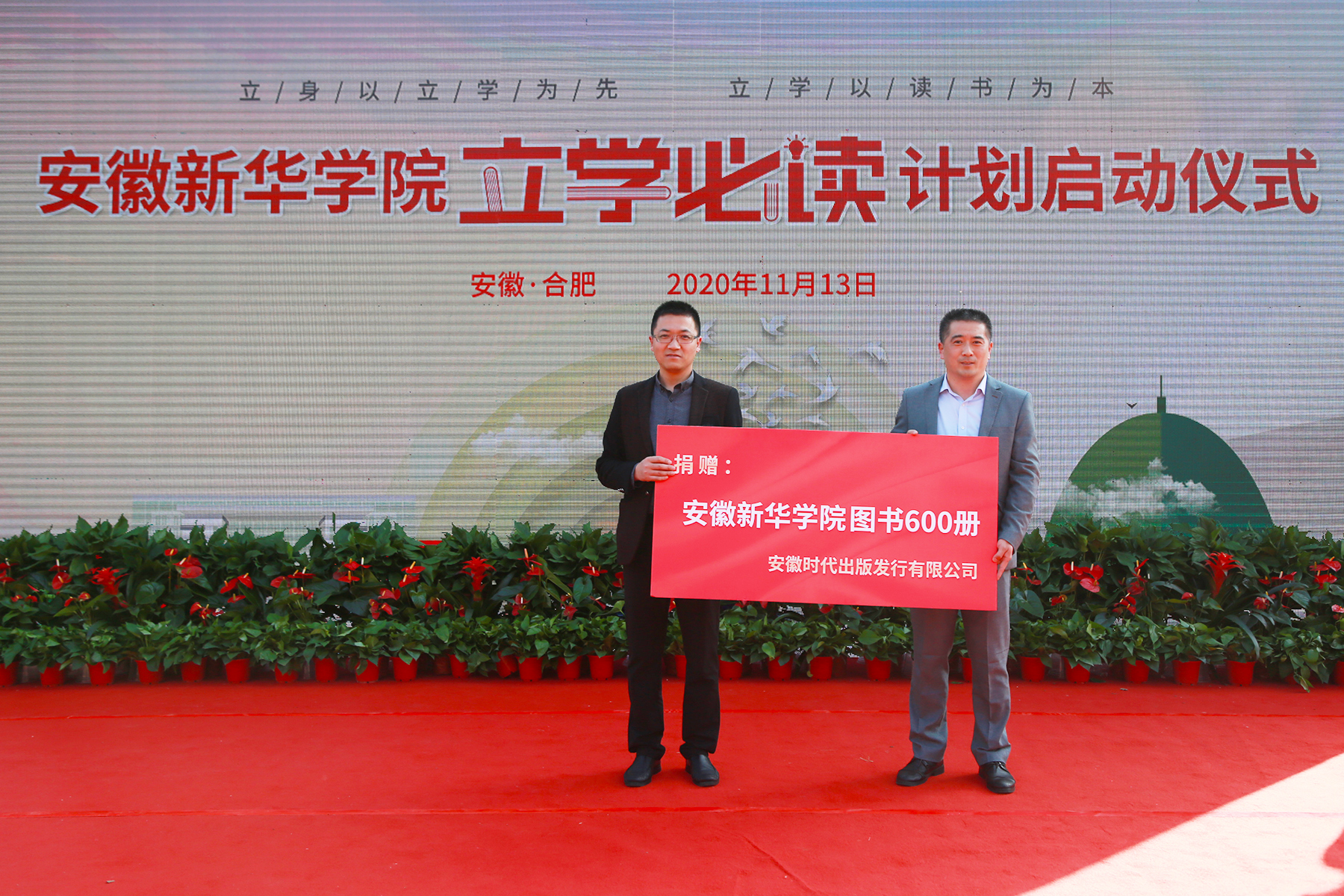 高钊阳代表安徽时代出版发行有限公司赠送书籍,校长助理王琦进代表beat365官网进行接收。