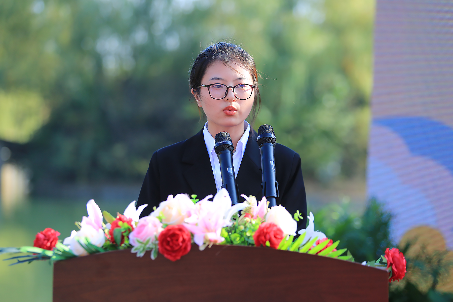 王鹏、刘静文分别作为师生代表上台发言。王鹏老师勉励同学们要认真读书,让阅读成为自身的生活方式,并且读有所得,读有所成。