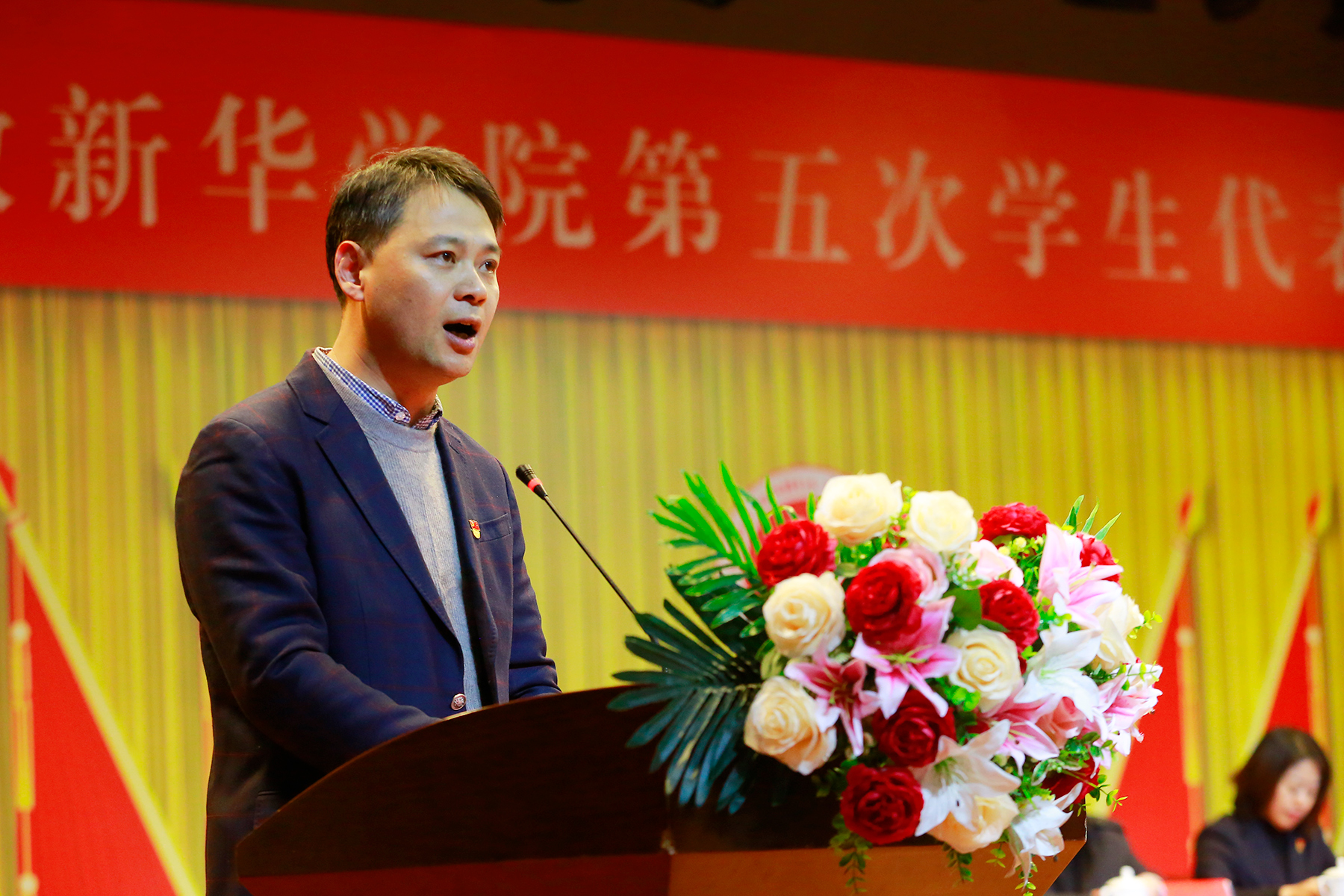 本网讯(通讯员:夏阳 摄影:翟漱文)11月24日,beat365官网第五次学生代表大会在大礼堂召开。省督导专员、校党委书记邸建伟,常务副校长王丽,校长助理汪俊东,校党委委员、土木与环境工程学院执行院长邵玲,安徽大学学生会代表陈伟俊,各党总支副书记,大会代表和列席代表等出席大会。学生处副处长王飞主持会议。