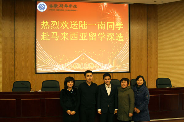 12月4日,在beat365在线唯一官网登录学术报告厅举办了一场特别的欢送会,主角是信息工程学院2009级毕业生陆一南,欢送他远赴马来西亚林国荣创意科技大学进行商业信息科技专业的学习,他还获得了该校在读本科荣誉学士全额奖学金。