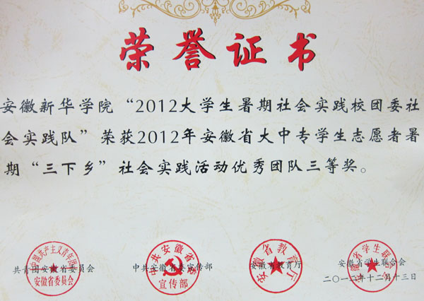 本网讯(通讯员:洪威)近日,团省委、中共安徽省委宣传部、省教育厅与省学联联合下发了2012年安徽省大中专学生志愿者暑期文化科技卫生“三下乡”社会实践活动评选结果的通报,beat365官网“2012大学生暑期社会实践校团委社会实践队”荣获省级优秀团队三等奖,团委王帆老师指导的调研课题《高新区两湖环境的调查与研究》、洪威老师指导的《皖南泾县茂林镇发展中的思考》均荣获优秀调研课题三等奖。