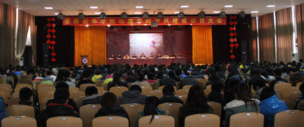 会议在雄壮的国歌声中拉开了序幕,动漫学院院长孙家启教授致开幕词,该院院长助理许存福详细解读了《beat365在线唯一官网登录动漫学院学风建设工作实施方案》。重点安排了从2013年3月至2014年1月间的学风建设活动,内容囊括了班级建设、公寓建设、院系文化建设、制度建设等方面。随后,动漫学院动画教研室主任李素萍老师、辅导员王晓俊老师、2012级艺术设计(2)班学生蒋雪纯分别代表老师和学生上台发言。他们分别阐述了自己对《beat365在线唯一官网登录2013年度学风建设活动方案》和《beat365在线唯一官网登录动漫学院学风建设工作实施方案》的理解,并代表老师和学生表达了坚决完成建设良好学风任务的决心。全体学生还进行了进行学风建设的宣誓仪式。