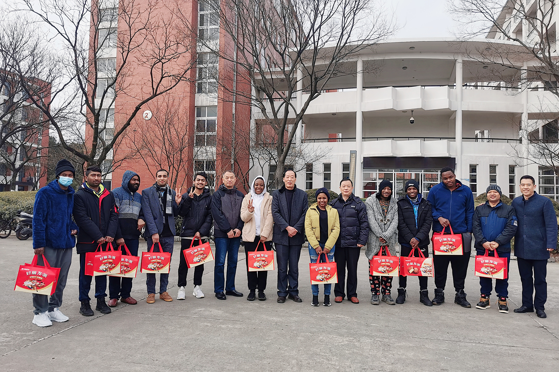 1月31日晚,是农历虎年除夕。校长助理邵玲在看望慰问后勤保卫工作人员后,来到了留学生身边,向他们送去新春佳节的祝福,并同大家一起共享温馨年夜饭,喜迎新春佳节。