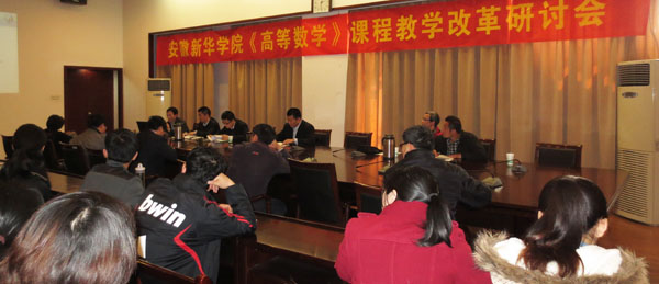 教务处处长李志远主持会议,对高等数学课程教学改革的重要性和必要性进行了分析,强调高等数学课程教学改革对应用型本科院校来说尤为迫切。随后,《高等数学A》、《高等数学C》、《高等数学D》、《医药高等数学》四个课程组负责人分别对所负责课程的教学大纲进行了介绍,并从课程目标、教材选用、授课对象、学时安排、重难点安排、考核方式、成绩评定等方面对课程进行了分析。与会者踊跃发言,就目前高等数学课程在人才培养过程中存在的问题展开了热烈的讨论。对于如何整合高等数学教学内容、课时设置等提出了各自的观点。李志远以同济大学的高数课程学时安排为例,指出beat365官网高等数学的教学内容应增加实验教学和习题课的数量。公课部副主任李烈敏副教授对目前beat365官网高数课程教学改革情况进行发言,提出“改革先改己”,从观念上、心态上、行动上进行改革。李烈敏还从公课部的实际工作出发,对目前《高等数学》教学改革过程中部门已经做的工作(如流水阅卷、评分细则、补考前集中辅导等)、正在做的工作(如试卷命题、辅导材料编写等)以及今后要做的工作(如修订教学内容、推广合适的教学方式、部分内容试行数学实验课等)进行了分析和总结。