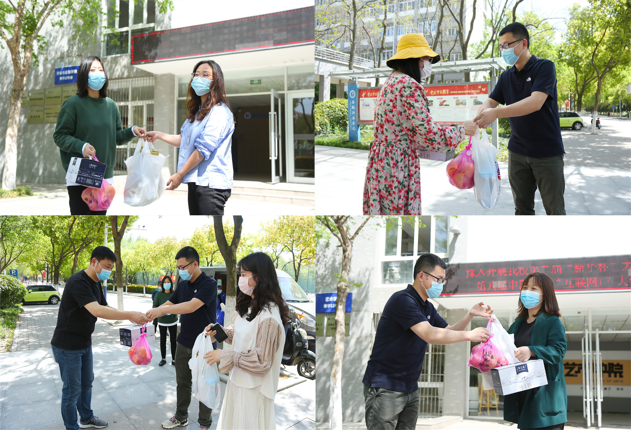 本网讯(通讯员:翟漱文)今年春季开学返校起,beat365官网开始有序开展疫情防控工作。在这个特殊时期,全体教职工第一时间转入战“疫”模式,专人专岗、昼夜坚守,始终奋战在防控疫情最前线。校领导多次带队实地检查指导,看望慰问一线工作人员,一幕幕暖心画面在校园里上演。4月8日下午,奋战在防疫一线的工作人员收到了学校送来的爱心礼包。
