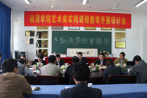 孙家启介绍了动漫学院近期本科实践教学工作情况,特别是2013届毕业生毕业实习和毕业设计工作的进展情况。黄德俊就如何权衡动漫学院毕业设计和毕业论文的关系进行了专门论证。
