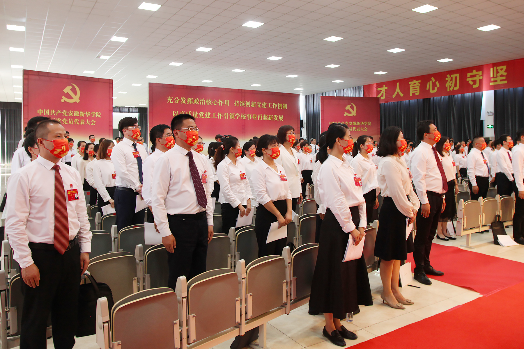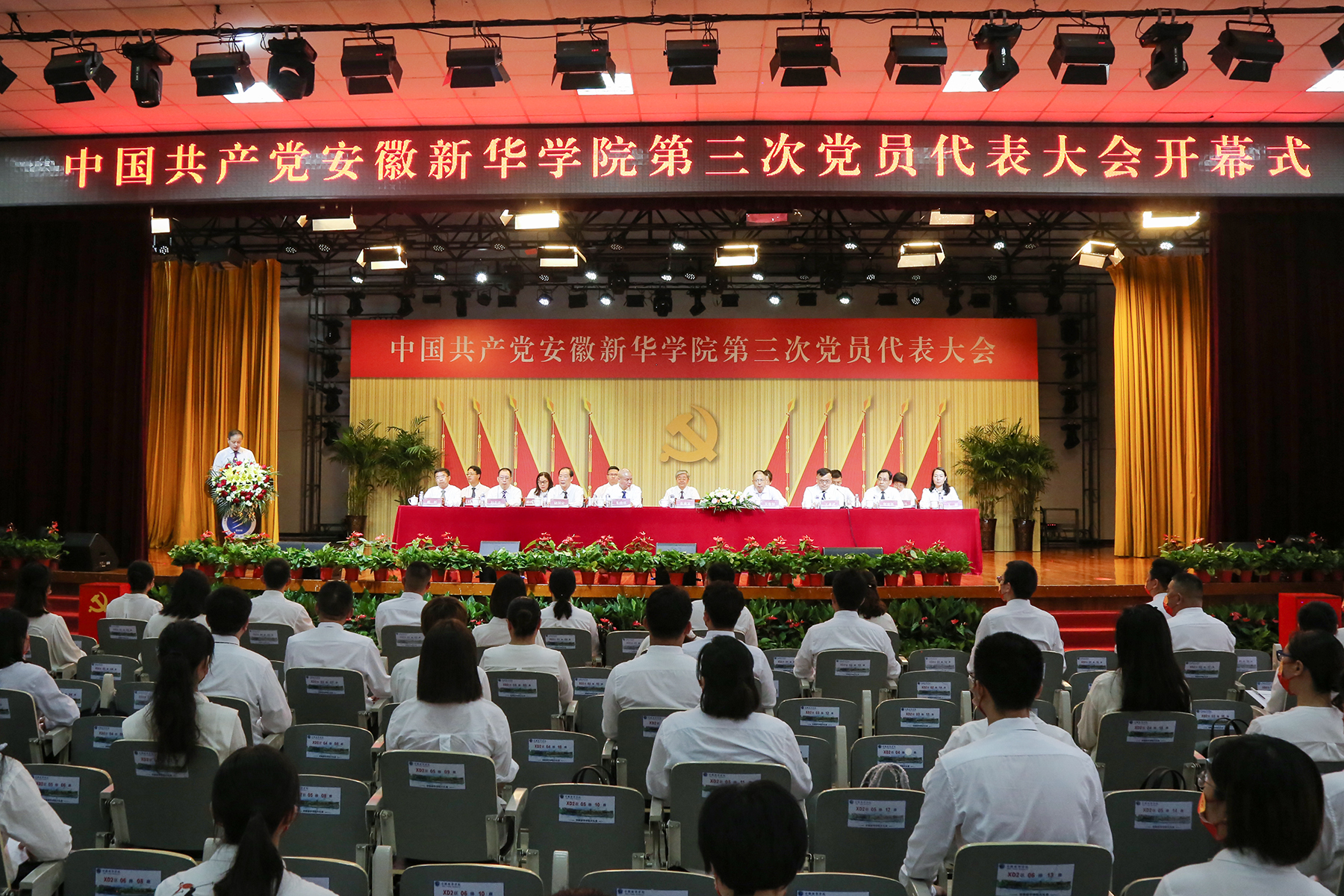 本网讯(通讯员:王亚君 摄影:翟漱文 陆如海 金政 方善润 胡倩)奋进新征程,砥砺新担当。7月8日上午9时,在庄严的国歌声中,中共beat365在线唯一官网登录第三次党员代表大会在校大礼堂隆重开幕。省委教育工委委员、省教育厅副厅长张庚家,省委教育工委组织干部处一级调研员朱晓明,新华集团董事长吴俊保、副总裁王孝武、行政人事部部长黄君婕出席开幕式。beat365在线唯一官网登录储国定、邸建伟、赵良庆、王丽、戴昕、胡昭林、贺行佳、王琦进、盛晓青、邵玲、蒋亚龙等同志在主席台就座。邸建伟代表中共beat365在线唯一官网登录第二届委员会作了题为《充分发挥政治核心作用 持续创新党建工作机制 以高质量党建工作引领学校事业新发展》的工作报告,会议由王孝武主持。学校各单位、各部门助理及以上管理人员列席开幕式。