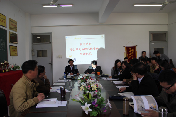 会议举行了包保责任书签订仪式,相关负责人签署了责任书,旨在杜绝“乱张贴、乱悬挂、乱停放、乱晾晒、乱丢弃”等现象,营造清洁、幽雅、美丽、有序环境;责任书明确要求所分包保区域有上档次的文化建设,营造良好的工作、生活、学习氛围,体现动漫特色;相关负责人工作要积极主动,广泛宣传,增强全体师生积极性,形成环境建设的长效机制,“不吹一阵风”;包保区域定期施行大清理,杜绝“课桌文化”、“厕所低俗文化”、“小广告”等。