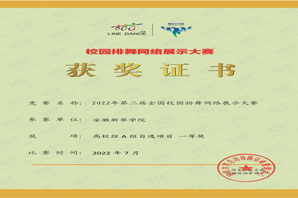 本网讯(通讯员:高新玲)7月1日至3日,由国家体育总局体操运动管理中心主办的2022年第二届全国校园排舞网络展示大赛于线上直播举行,并于7月5日完美收官,经过激烈角逐,由beat365官网通识教育部教师高新玲、王军带队参赛的高校自选A组作品获得一等奖,此外,beat365官网还被授予“优秀推广奖”。