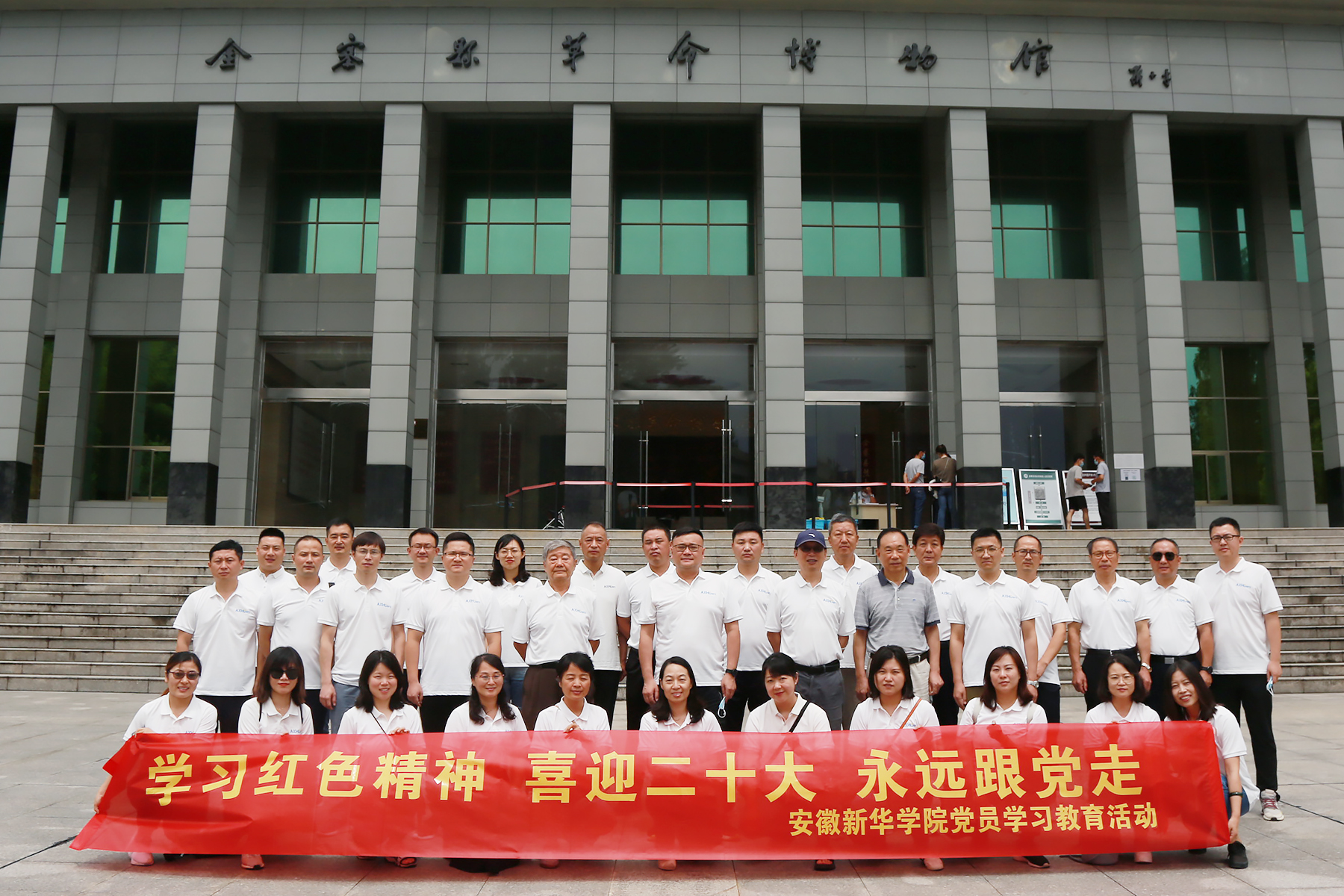 7月26日,新华集团副总裁、校董事长王孝武带领全体培训班学员来到金寨红军广场,参观了金寨县革命博物馆。博物馆以丰富的史料展示了著名的立夏节起义和六霍起义,以及在此诞生的红32师、红33师的革命事迹,呈现了金寨人民踊跃参加新四军、重建革命根据地、迎来全国解放的革命历史。烈士陈列馆内陈列着著名烈士的画像和事迹,以及全县11000多名烈士英名录。在馆内将军厅,通过解说员声情并茂地讲解,大家了解了洪学智等59位金寨籍共和国将军的戎马生涯和人生风采。活动现场,大家仔细聆听讲解,认真观看展厅里的图片、物品、雕塑等,回顾中国共产党在大别山区发展壮大的艰苦历程,深刻感悟革命烈士为争取民族解放、国家独立而牺牲奋斗的伟大征程。