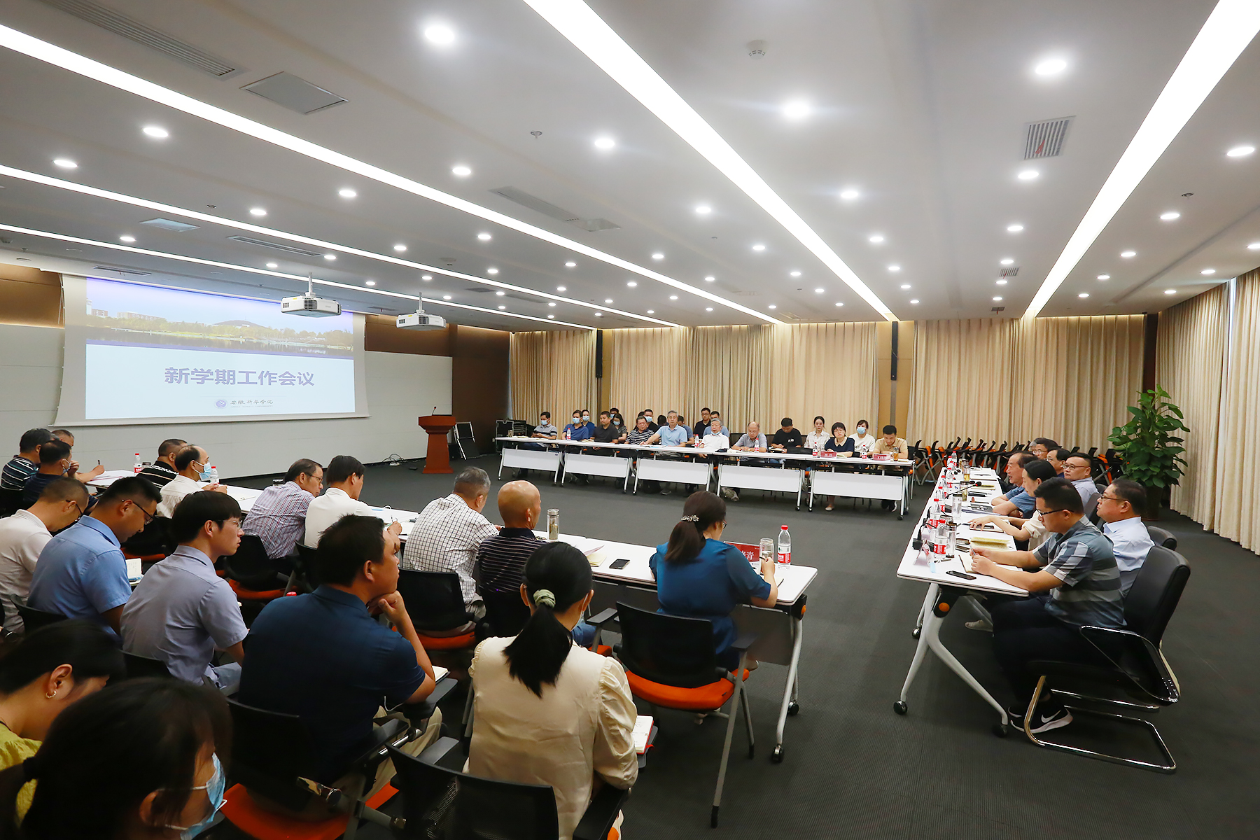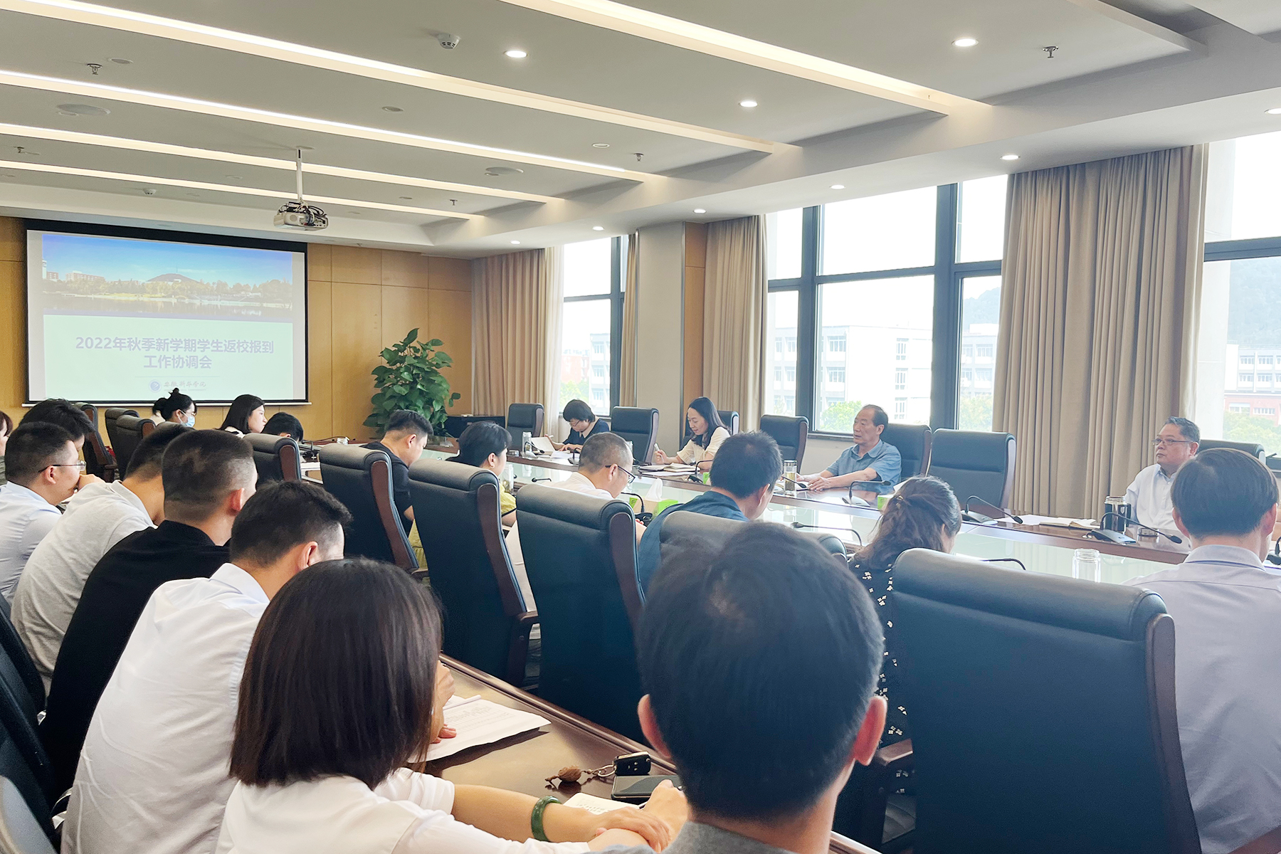 8月22日上午,学校组织召开了新学期学生返校报到工作协调会。校领导重点针对新学期学生返校方案进行了分析研讨,各职能部门分别就开学准备工作情况作了汇报。本着“安全有序、热情主动、简洁周到、优质高效”的原则,目前开学的各项准备工作已在各部门的精心准备下井然有序、有条不紊地开展。对此,校执行董事长储国定提出三点要求:一是务必做好防疫工作,对师生信息进行全面摸排,对校园进行全面消杀,开展相应防疫演练;二是所有教职工及志愿者需保持高度的精气神,特殊情况特殊处理,满足师生的合理诉求,做一个有温度的新华园人;三是要将开学工作要求、会议精神传达至各部门各学院,贯彻落实、精准执行。
