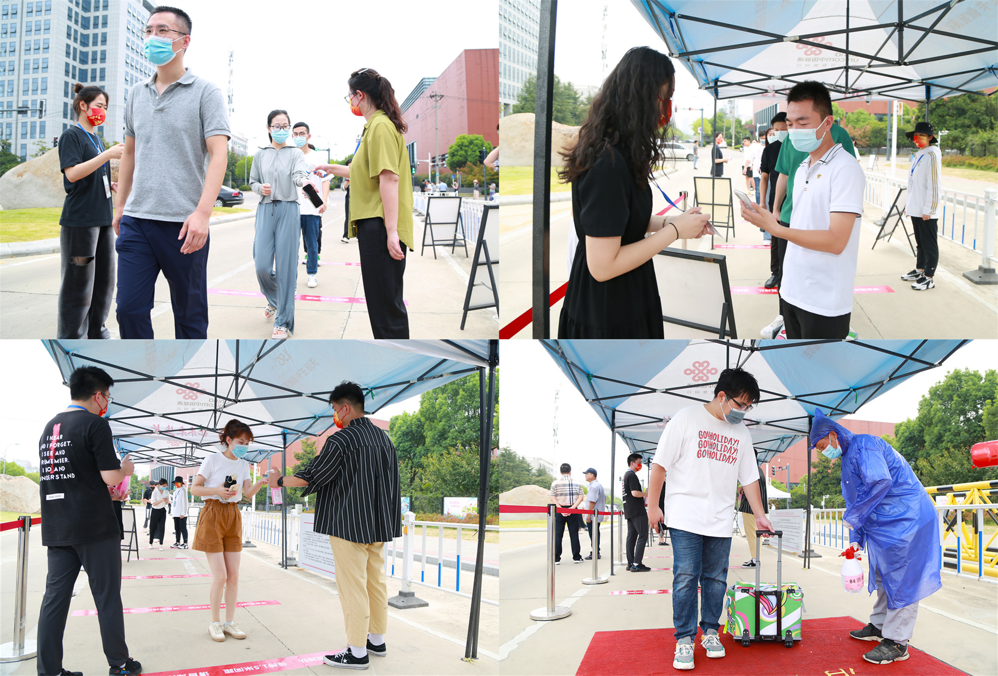 根据省委省政府、教育厅相关防控要求,8月23日上午,beat365官网组织开展了2022年秋季开学疫情防控演练。本次演练主要围绕校门、学生公寓、食堂、快递点、隔离点五个区域进行,包含对学生体温初测、消杀、前往留观点、异常情况上报、人员转送等环节。在学生返校报到场景演练中,设立入校通道、身份核验点、测温点、行李消杀点、应急处置点,返校学生手持健康码(绿码)、行程卡(绿码)、核酸检测证明,保持安全距离,在工作人员的引导下分别进行体温检测、行李消杀、定点报到,重点模拟演练了异常情况的应急处置。副校长贺行佳,校长助理邵玲一行带队到场检查指导。