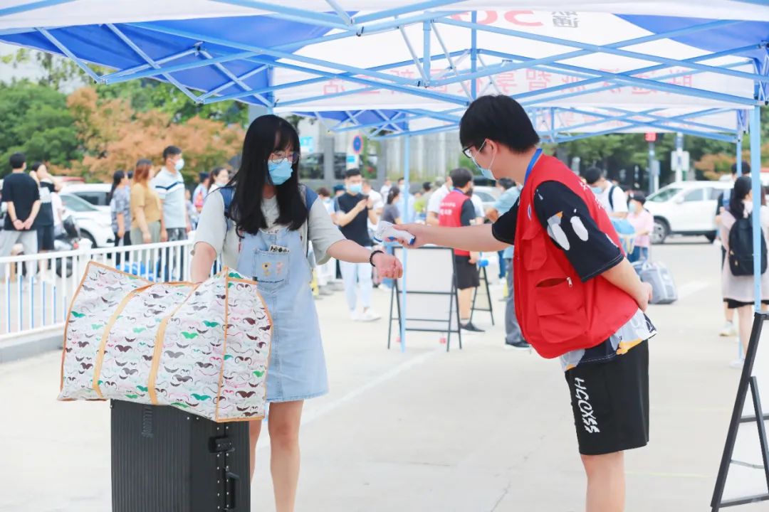 各学院党总支书记亲临报现场指导工作,各支部党员志愿者勇于亮身份、乐于做奉献。结合疫情防控有关要求,党员志愿者站在迎新的第一道关口,陪在新生身边,搬运行李、介绍学校情况,引导新生有序报到。他们用热心周到、细致入微的服务,践行着“不忘初心、牢记使命”的铮铮誓言,用实际行动巩固拓展党史学习教育成果,深入推进“我为师生办实事”。