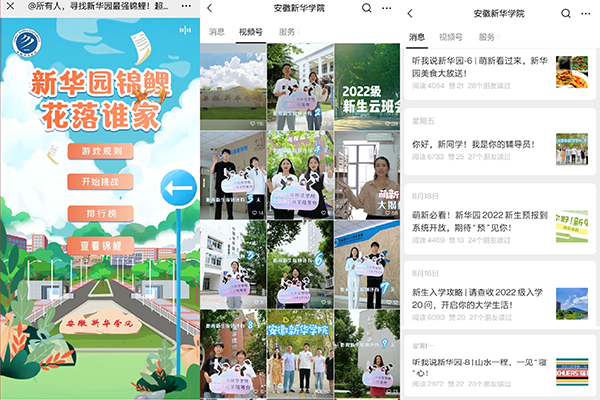 为帮助新生熟悉校园,学校通过官方网站、微信公众平台、抖音、视频号、新生群等开展各类迎新宣传,推送逛专业、逛校园、入学指南、新生攻略等内容,还精心策划了“约定新华园”新生福利活动。