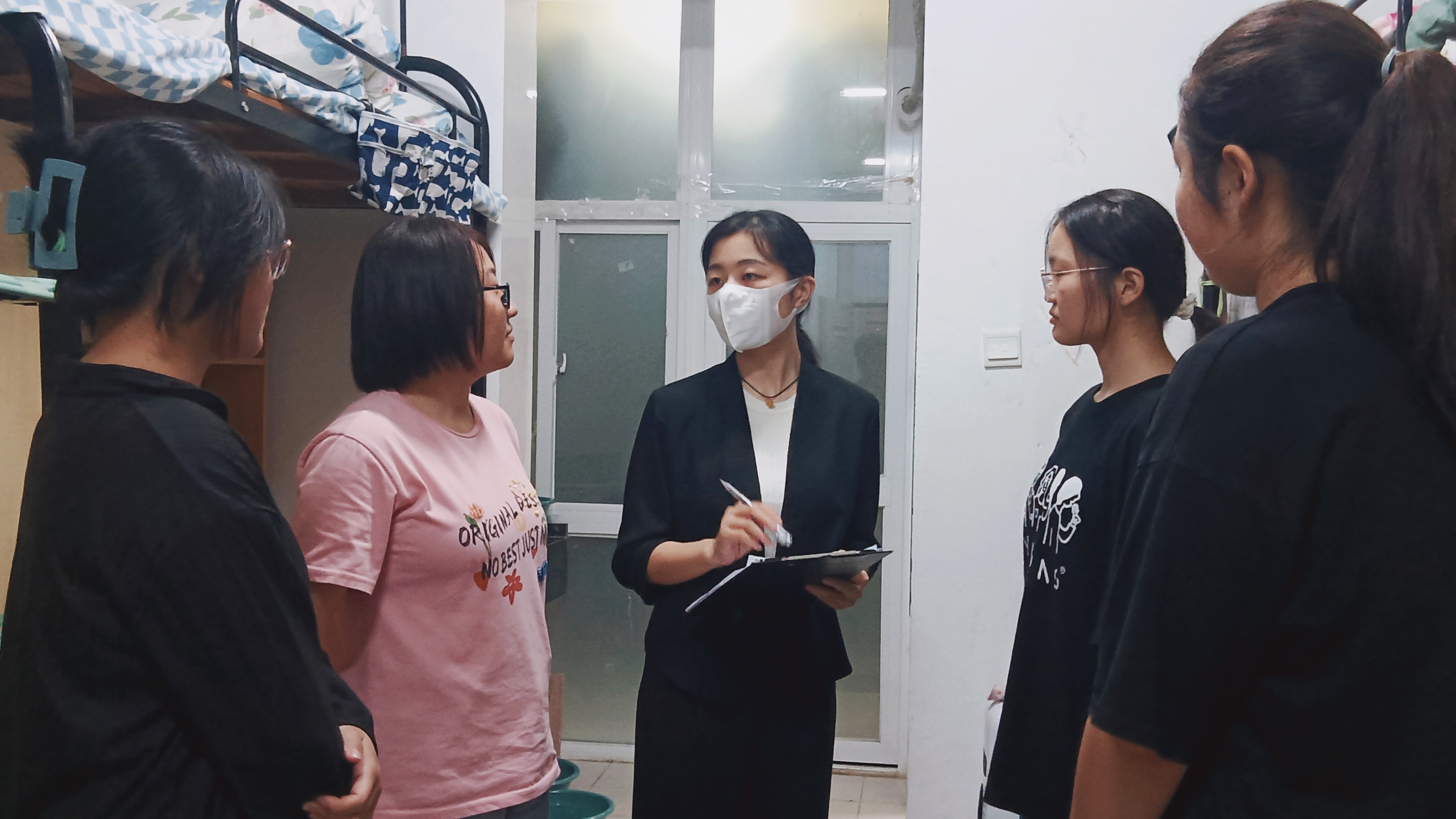 “第一次离开家,感觉没有妈妈的日子好难过,有点想家。但是室友们都很可爱,对我也很好,我们一起接水,一起吃饭,一起逛校园!”电子信息工程专业黄子梦说,“本来刚离开家的落寞心情也渐渐消散了,特别感动,感受到了宿舍里的温情。”