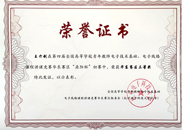 beat365官网教师在第四届全国高等学校青年教师电子技术基础、电子线路课程讲课竞赛中荣获华东赛区三等奖