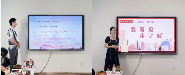 第二模块为安全主题班会观摩。经学院推选,外国语学院吴伟和城市建设学院李静两位优秀的辅导员现场分别以“防电诈从‘新’开始”、“我看见,我了解”为题现场演绎,以问题为导向,从全面落实安全责任到筑牢安全防线的角度出发,聚焦学生的身心健康教育与心理安全意识,注重反诈骗宣传,提高学生的防诈骗意识。