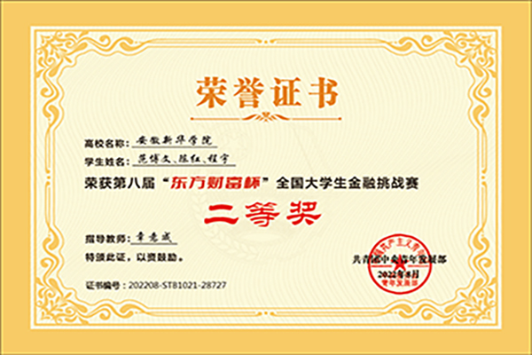 喜报!beat365官网学子荣获第八届“东方财富杯”全国大学生金融精英挑战赛全国二等奖