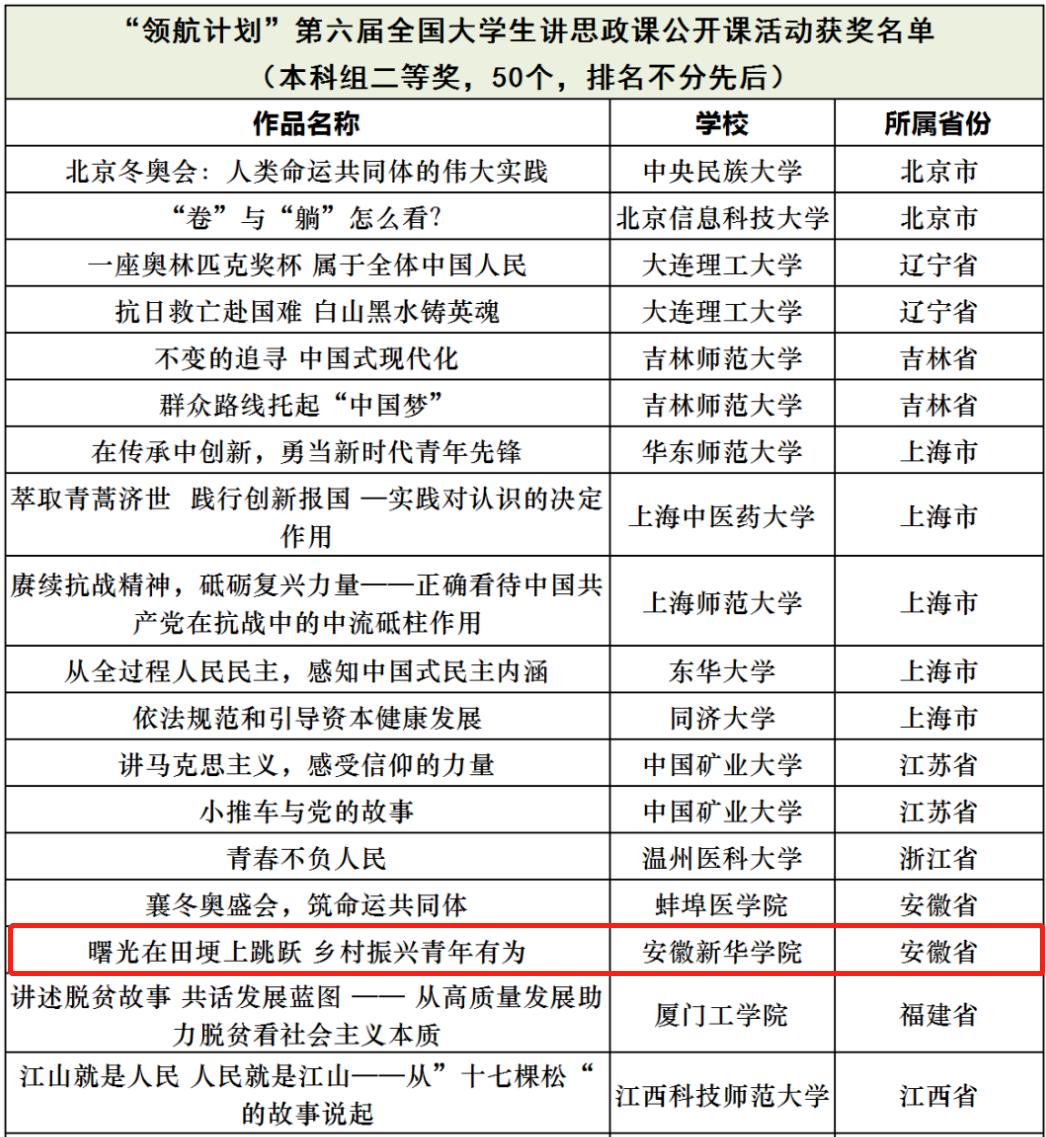 本网讯(通讯员:吴之娴)近日,由教育部高校思想政治理论课教学指导委员会主办、南开大学马克思主义学院承办的习近平新时代中国特色社会主义思想大学习领航计划主题教育“青春献礼党的二十大•强国有我新征程”——第六届全国高校大学生讲思政课公开课活动评选结果揭晓,beat365官网马克思主义学院董丽娟、刘丽娟两位教师指导的学生作品《曙光在田埂上跳跃——乡村振兴 青年有为》荣获本科组二等奖。这是beat365官网继第五届全国大学生讲思政课公开课活动获优秀奖之后再一次获奖,也刷新了学校参加本项赛事以来的最佳成绩。