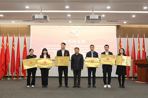 校领导为优秀共产党员、优秀党务工作者、先进党支部、先进党总支/直属党支部以及省级“双带头人”教师党支部书记工作室颁奖。