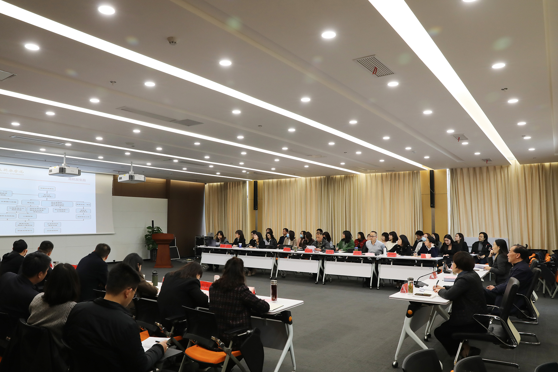 接着,各二级学院就近期开展学生管理工作相关举措进行了汇报交流,从安全工作、特色/亮点/创新工作、工作中的问题或困难以及关于解决思路的思考等方面做汇报发言,在整体交流过程中,大家思路清晰,举措扎实,亮点突出。