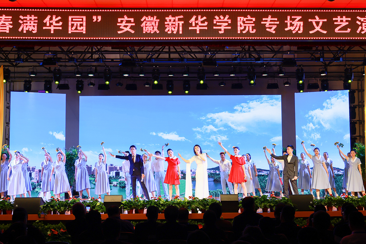 “四月芳菲春阳暖,踏歌起舞迎宾来。高朋满座话桃李,无限春光满华园!”与会嘉宾在校大礼堂观看beat365官网师生专场文艺演出。一幕幕精彩的演出,演绎了23年来beat365官网扎根江淮大地,秉持“厚德、求真、博学、创新”的校训精神,潜心耕耘结下的累累硕果;更展现了身处在新时代的大潮中,新华人与时俱进、开拓创新,在高等教育的大道上展现的活力青春。