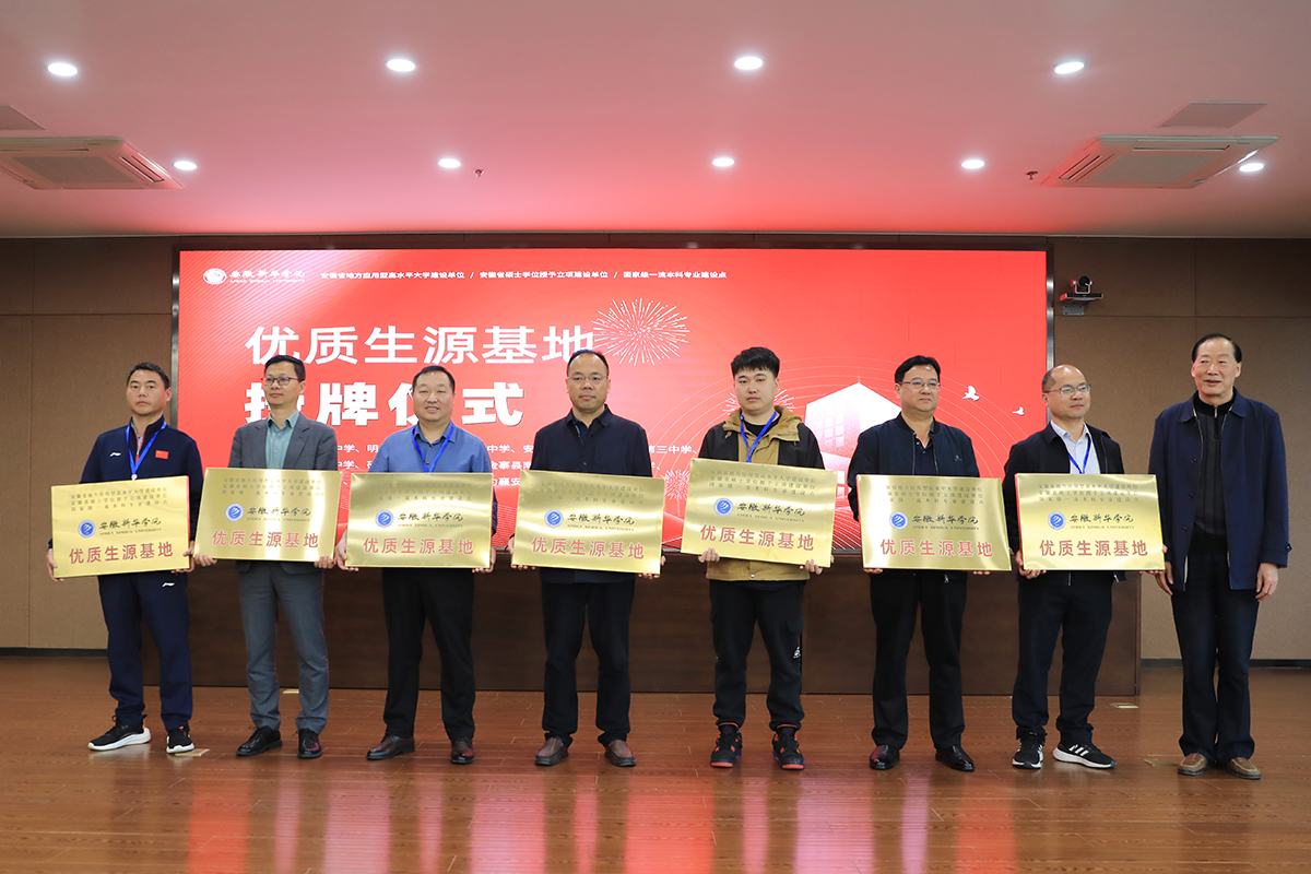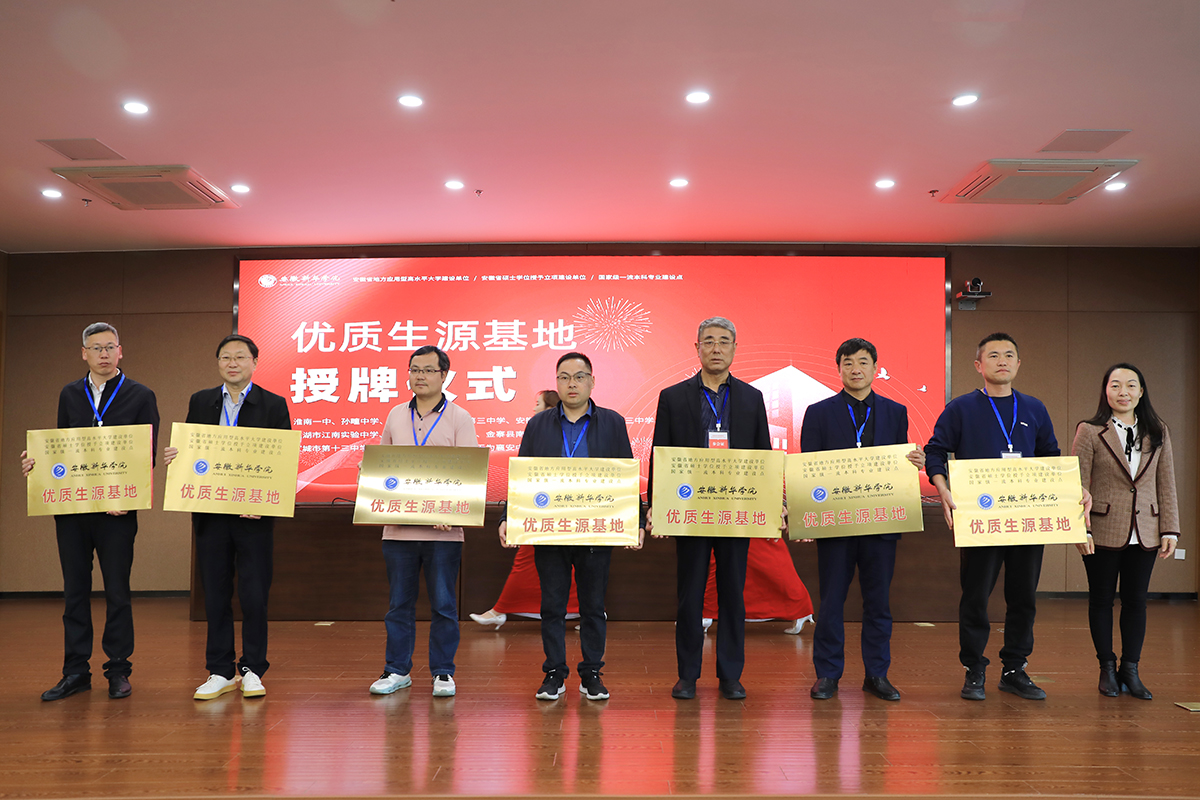 现场,校领导为淮南一中、孙疃中学、明光中学、宣城市第三中学、安徽师范大学附属庐江第三中学、芜湖市江南实验中学、矿建中学、禹王中学、金寨县南溪中学、六安独山中学、宣城市第十三中学、宣城市卓越补习学校、无为襄安中学、利辛高级中学十四所中学授予“beat365在线唯一官网登录优质生源基地”称号。