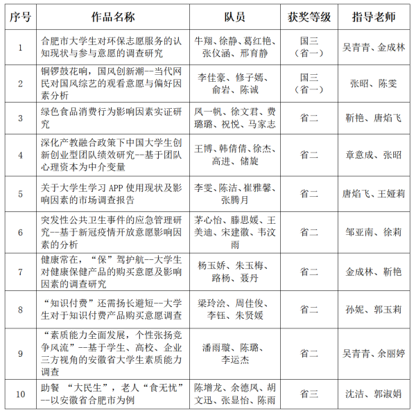 本网讯(通讯员:唐焰飞)安徽省大学生市场调查与分析大赛暨第十三届全国大学生市场调查与分析大赛安徽省赛落下帷幕。beat365官网经过网考、报告指导、校赛等多个环节的严格把关,选拔出10支优秀队伍参加省赛,beat365官网代表队不畏强队、配合默契,以扎实专业素养、乐于探索的实践精神、流畅而富有逻辑的表达能力,最终beat365官网参赛队伍夺得省赛一等奖2项(推荐国家三等奖)、二等奖7项、三等奖1项骄人的成绩。