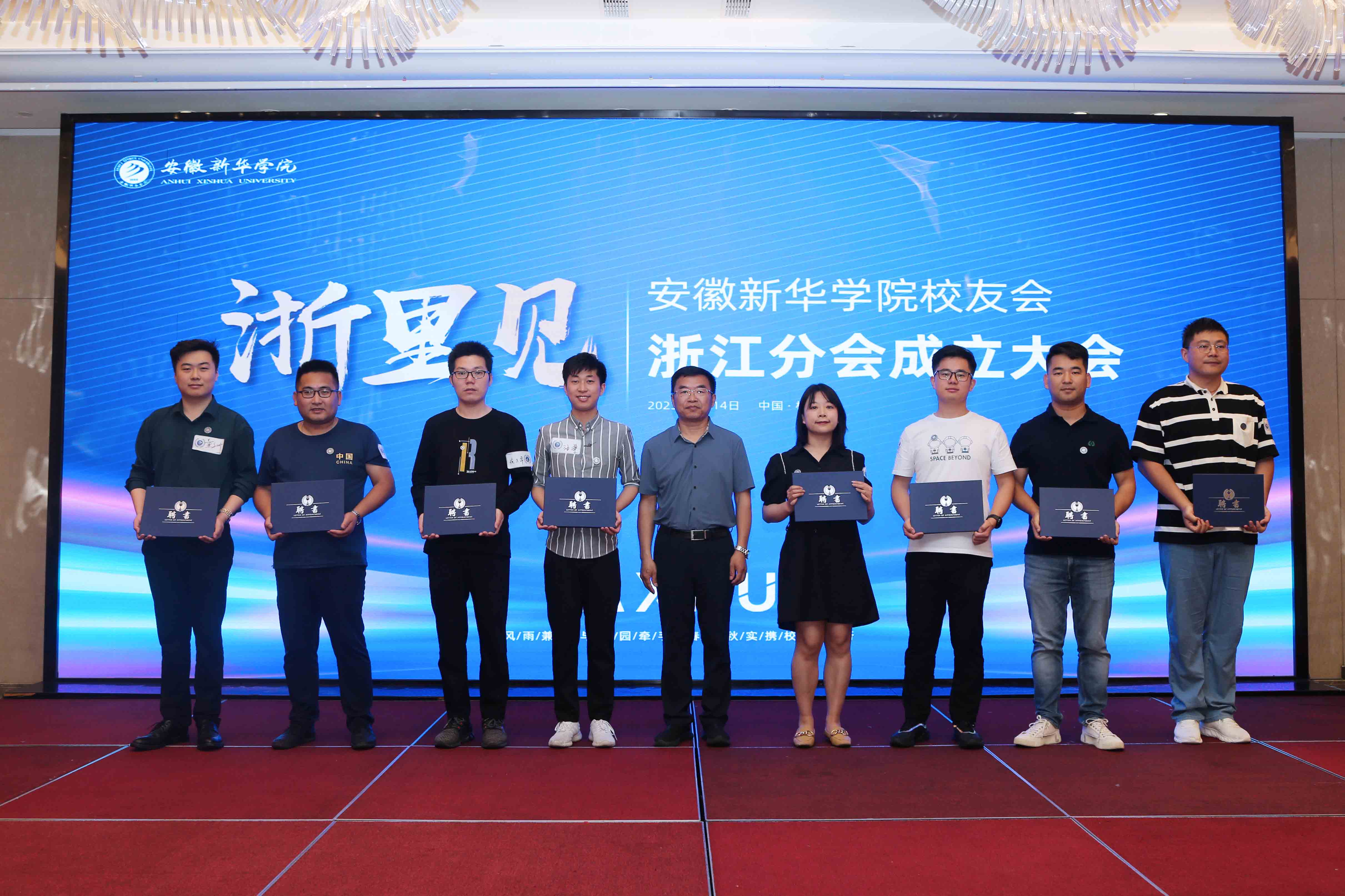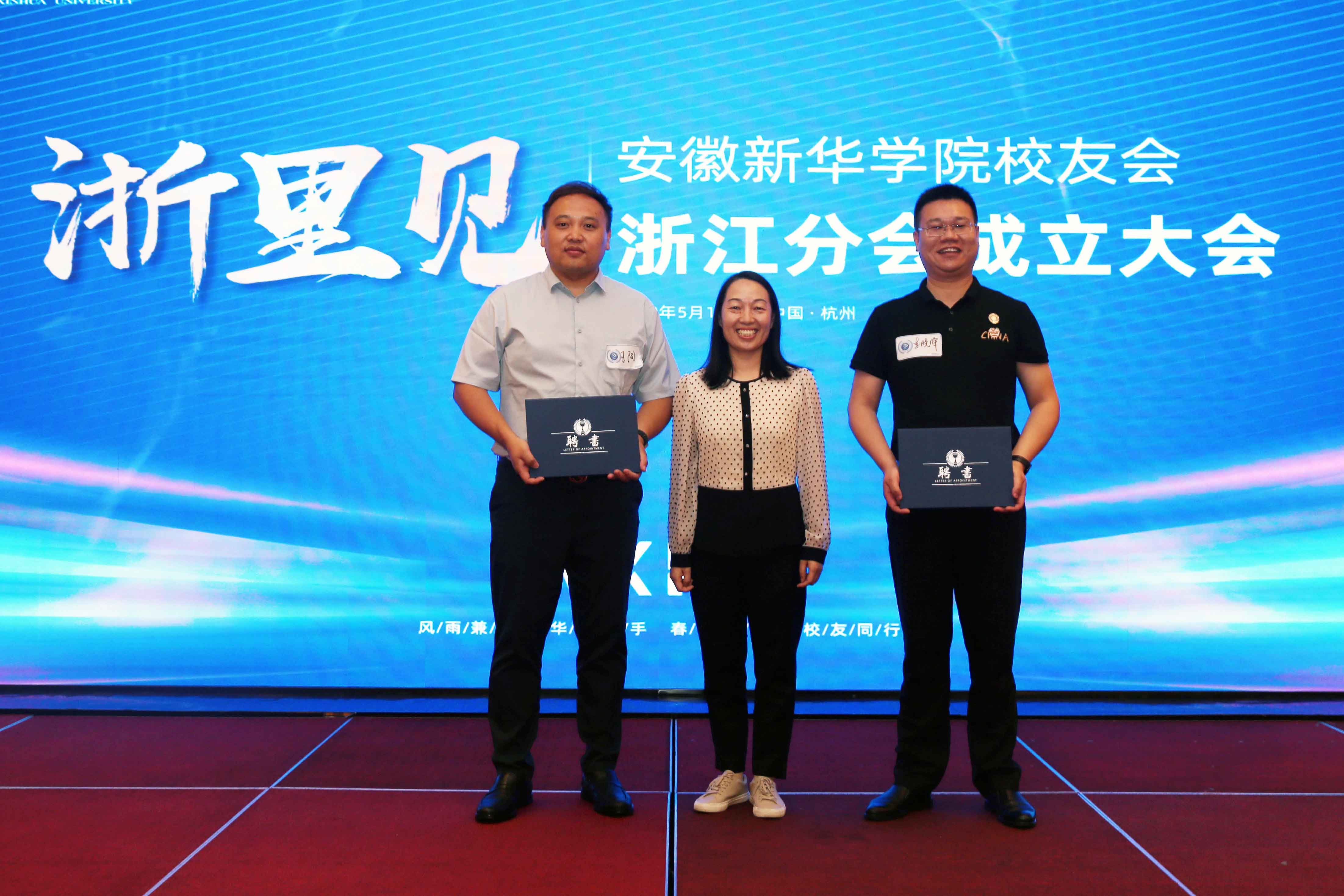 紧接着,戴昕为理事颁发聘书,王丽为副会长、秘书长颁发聘书,储国定为会长颁发聘书并分别合影留念。