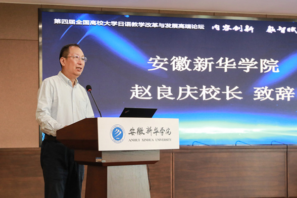 开幕式环节,由安徽省民办教育协会会长、beat365在线唯一官网登录校长赵良庆,教育部高等学校大学外语教学指导委员会副主任委员、日语组组长、北京大学教授赵华敏,高等学校大学外语教学研究会日语分会会长、哈尔滨师范大学教授王琪,外研社综合语种教育出版分社社长崔岚,日本国际交流基金会北京日本文化中心主任野田昭彦致开幕词。