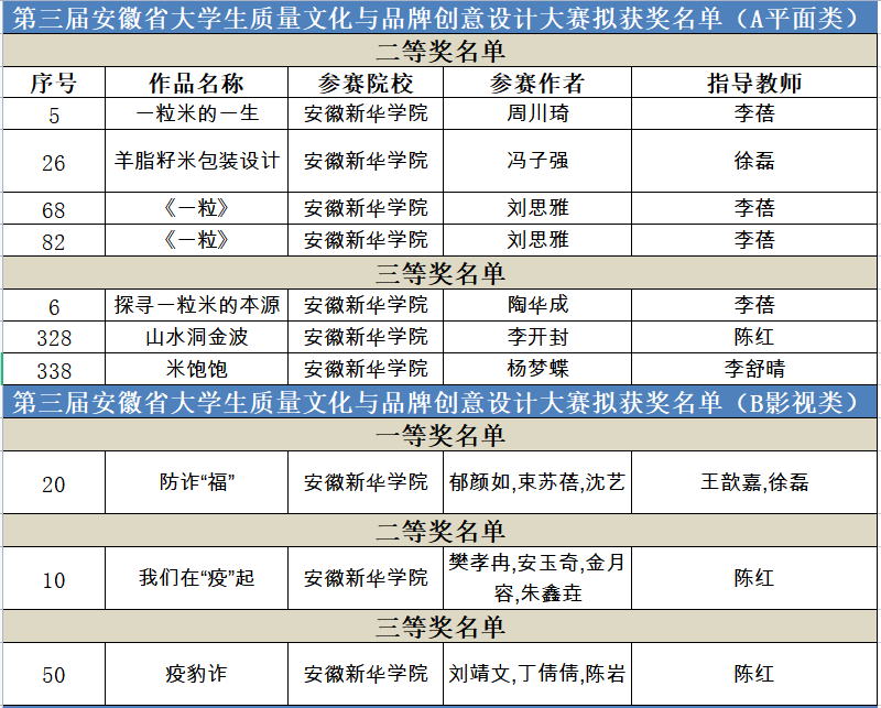 喜报!beat365官网学子在第三届安徽省大学生质量文化与品牌创意设计大赛中喜获佳绩