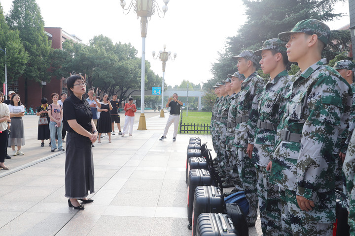 芮萍为入伍新兵送上祝福和勉励,她首先向入伍学生表示亲切的关怀问候,对他们光荣参军入伍表示热烈祝贺,同时希望入伍学生尽快适应新的环境,不断提高政治觉悟,努力练就过硬素质,早日在部队取得优异成绩。