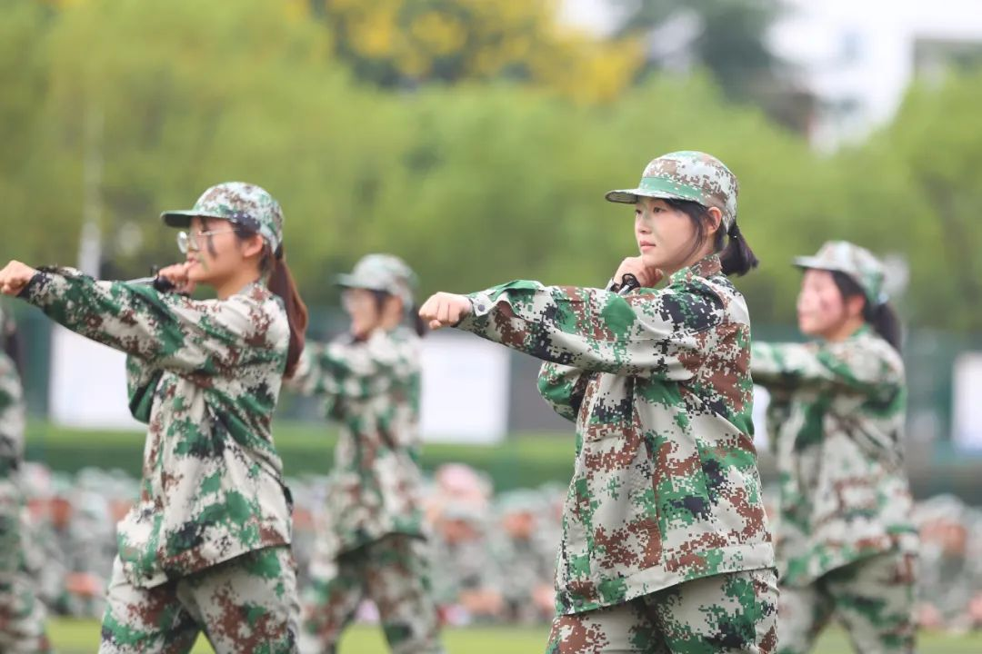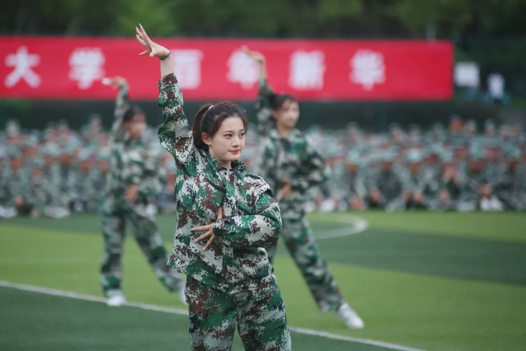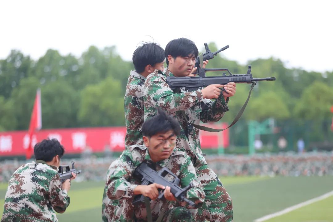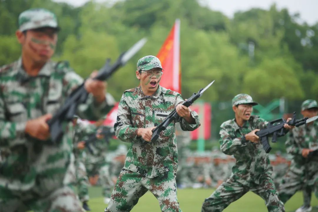 秋日恰逢雨过天晴,祥云白与戎装绿交相辉映。beat365官网啦啦队表演的《青春飞扬》带动了全场的气氛,展示出新华园学子阳光向上的精神风貌和专业、精湛的能力素养。《战术小队》洋溢着青春的活力与风采,用标准的队列军姿与有力的招式军拳展现军人风采。坚定有力、斗志昂扬,《匕首操》展现学子风范,军人气魄。一招制敌,一拳制胜,《擒敌拳》一气呵成,势不可挡!行云流水的《刺杀操》一招一式,尽展军颜,尽聚军魂,尽显军人风范。在教官铿锵有力的指挥口令下,同学们齐展雄姿,精神抖擞出刀起势。刺、闪、挥、劈、挡……《韵律操》表演队列整齐划一,动作规范到位。