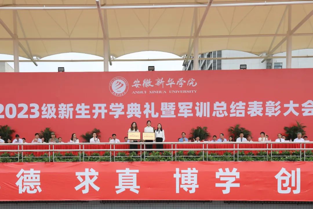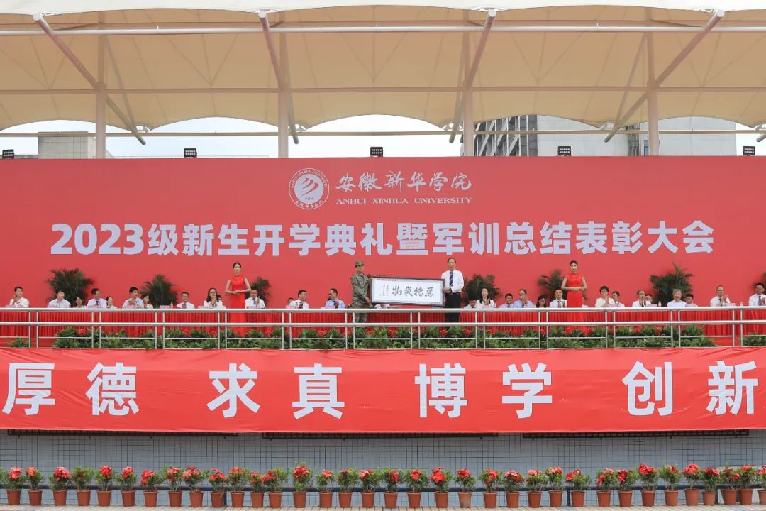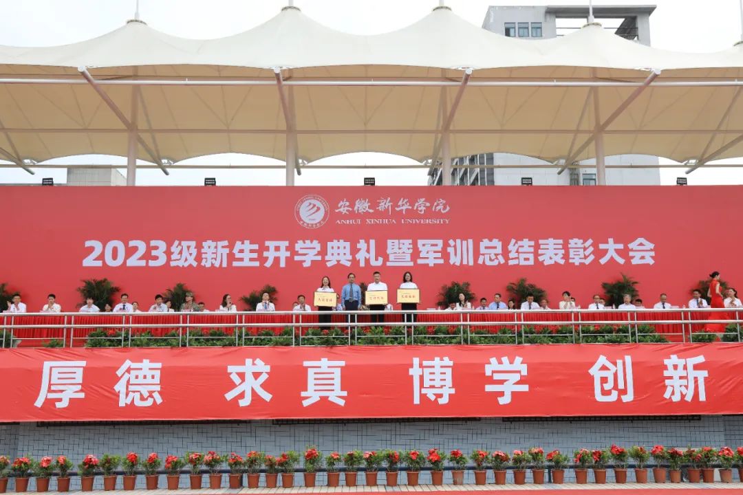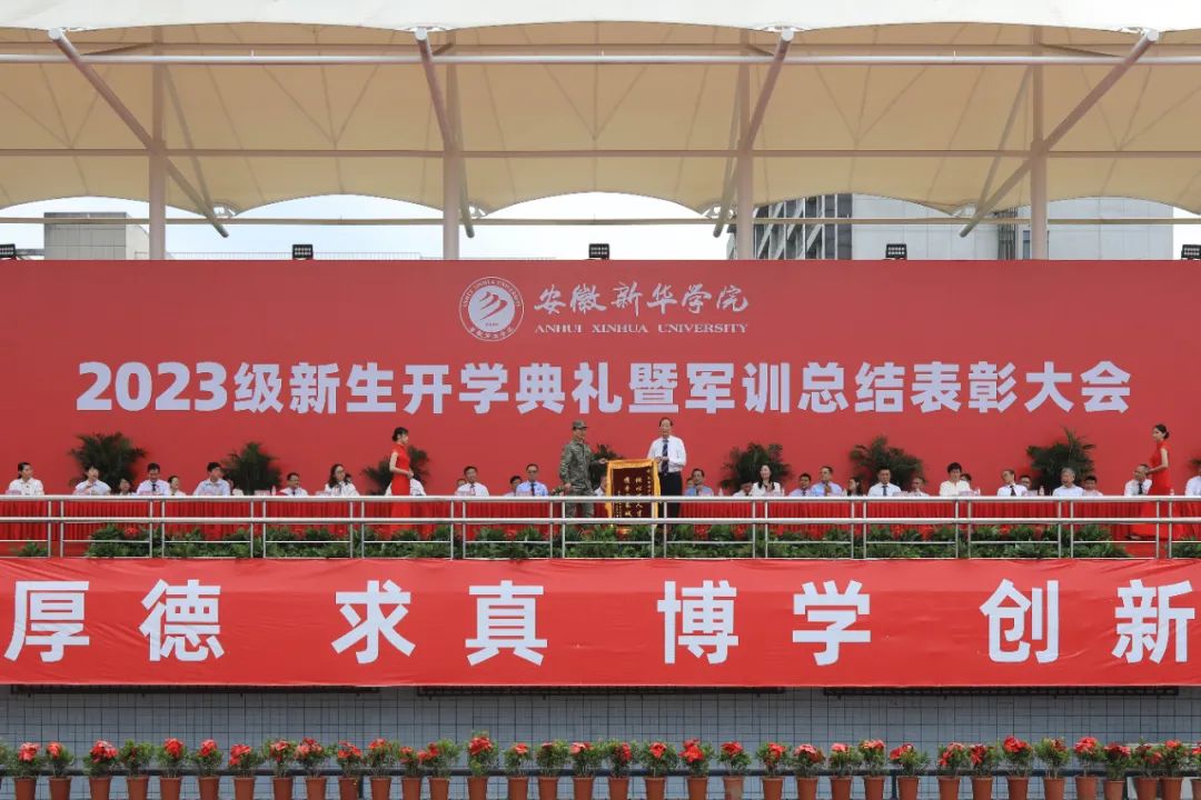 本网讯(通讯员:张婷婷)9月14日上午,beat365官网2023级新生开学典礼暨军训汇报表演在祥云体育场举行。beat365在线唯一官网登录董事长储国定,省督导专员、校党委书记邸建伟,校长赵良庆,常务副校长王丽,副校长戴昕、李金星,校长助理王琦进、盛晓青、邵玲,合肥市蜀山区人民武装部军事科参谋石剑,各二级学院院长、执行院长,各职能处室负责人出席本次大会。大会由副校长贺行佳主持。