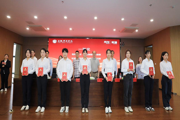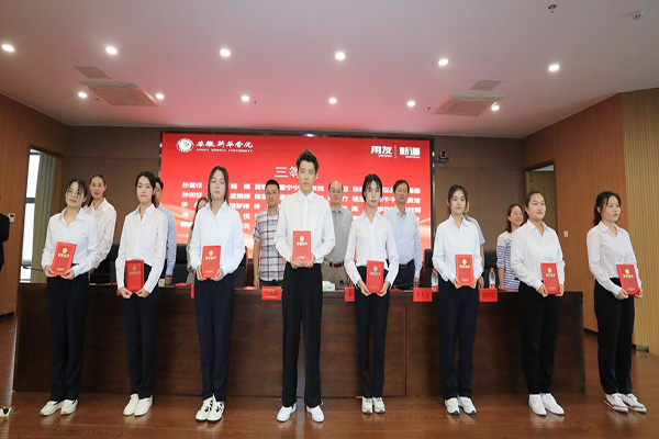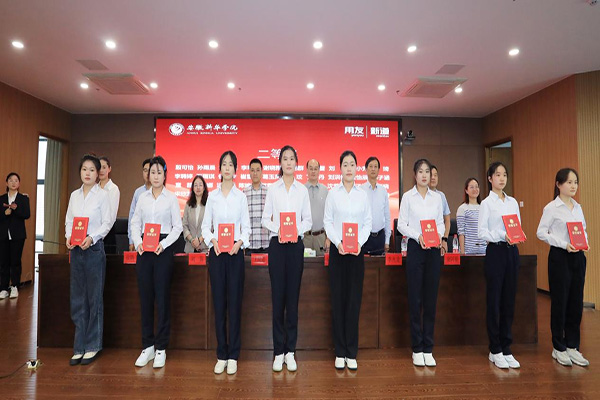 校企双方领导为荣获新华•用友校企奖学金学生代表进行颁奖。