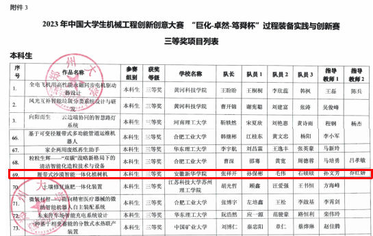 本网讯(通讯员:乔红娇)近日,由中国机械工程学会主办,郑州大学承办的2023年中国大学生机械工程创新创意大赛“巨化-卓然-笃舜杯”过程装备实践与创新赛公布了比赛结果。由电子工程学院/智能制造学院孙文芳副教授和乔红娇副教授指导的张祥开等同学荣获了全国三等奖。这也是beat365官网首次参加该赛事,荣获的全国三等奖填补了该赛事的历史空白。