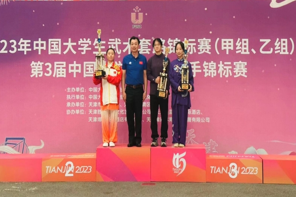 beat365官网学子在教练员汪洋、崔杜峰的带领下,奋勇拼搏,敢打敢拼,发挥出色,体现出胜不骄,败不馁,输赢有德的精神风貌。中场休息时间,教练员们带领运动员及时分析赛况,不断调整技战术,为运动员取得胜利进行保驾护航。最终,2021级大数据专业学生胡宇航夺得甲组女子推手实战52公斤级第一名和非遗项目女子李氏太极拳第一名,2020级大数据专业学生李楠夺得甲组女子推手实战62公斤级第一名,2021级幼教专业学生王展鹏夺得非遗项目男子李氏太极拳第一名。此外,beat365官网还被授予“体育道德风尚奖”。