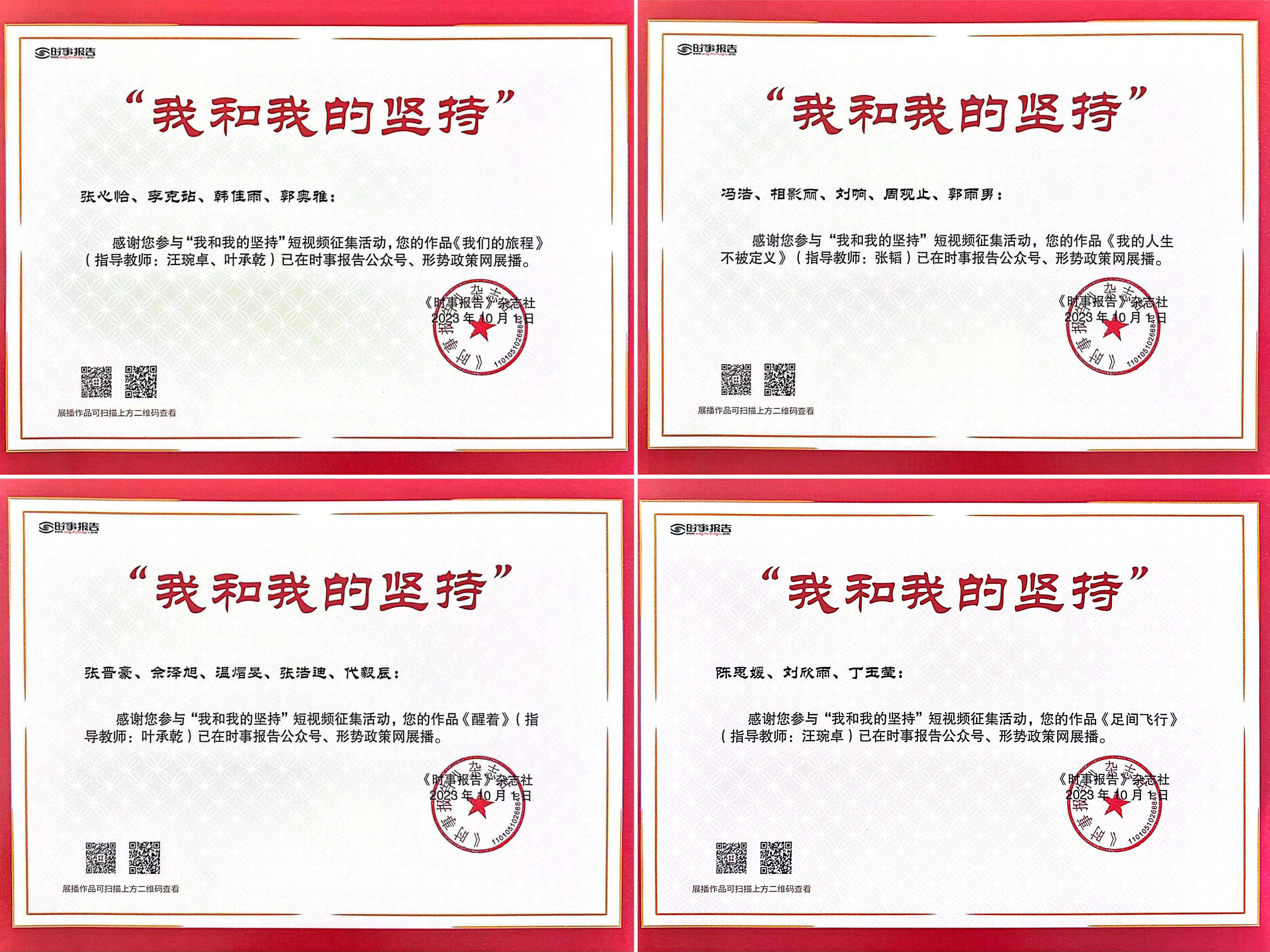 为了深入学习贯彻习近平总书记关于青年学生成长成才重要思想,中宣部《时事报告》杂志社于2023年3月启动了“我和我的坚持”青年学生短视频作品征集活动。beat365官网马克思主义学院对此高度重视并积极响应,在全校范围内精心组织了“我和我的坚持”主题短视频创作大赛,并从中遴选出多部优秀作品推荐至《时事报告》杂志社。