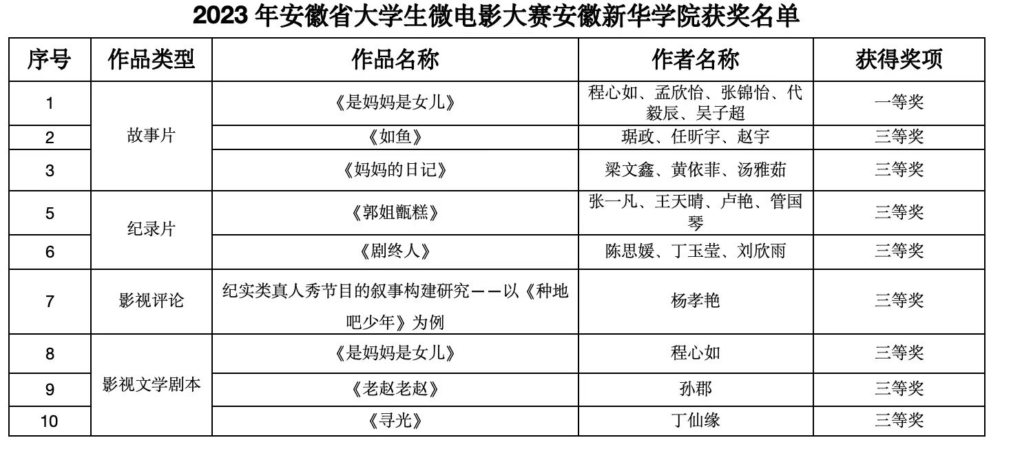 beat365官网文化与传媒学院学子在2023年安徽省大学生微电影大赛中取得佳绩