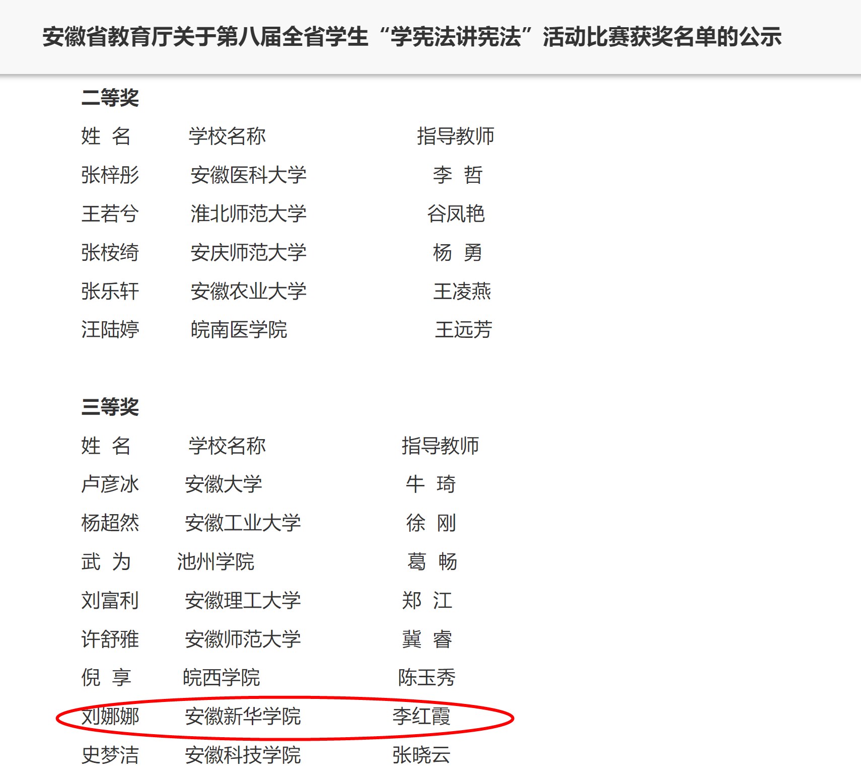 本网讯(通讯员:李红霞)近日,由安徽省委教育工委、安徽省教育厅主办的第八届全省学生“学宪法讲宪法”比赛活动,正式公布结果。beat365官网22级学生刘娜娜在马克思主义学院教师李红霞的指导下,荣获全省高校组演讲比赛三等奖。