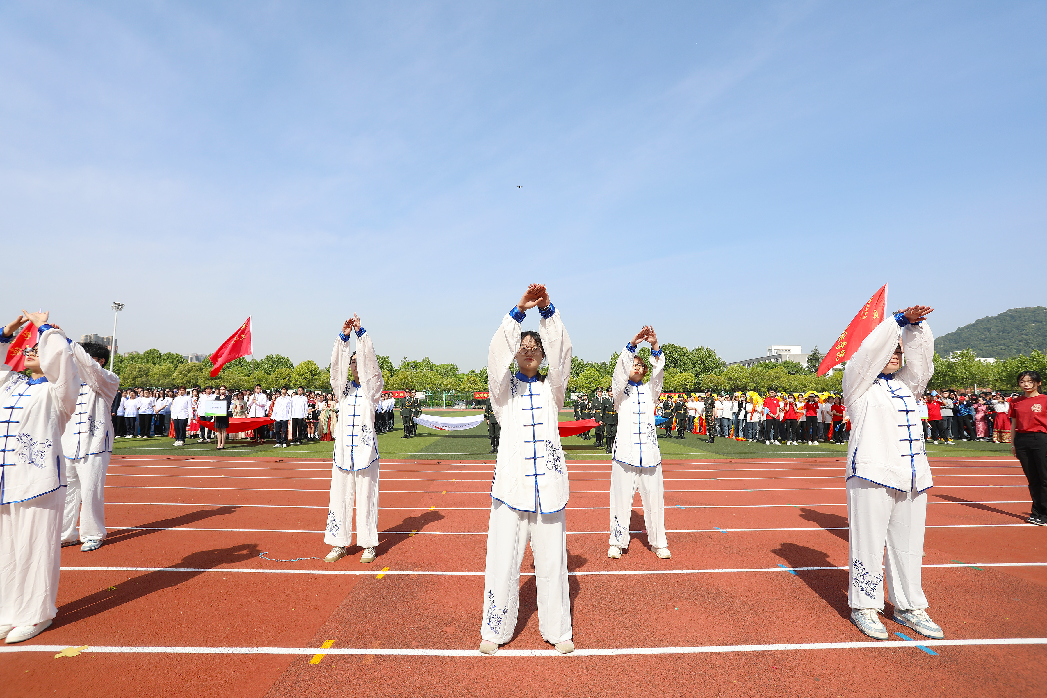 循梦而行,向阳而生。正式开赛前,精彩纷呈的表演陆续开展,科技学院带来《我们的未来式》舞蹈表演,舒展灵活的动作,舞出新华园的青春活力;来自12个体育俱乐部的16名教师、近400名学生带来团体操《中国力量》表演,致敬奥运精神。