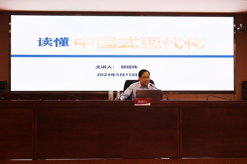 课堂上,邸书记以“读懂中国式现代化”为题,运用详实的数据和耳熟能详的案例,从“展现新图景,创造新形态”“拥抱新机遇,无畏新挑战”“锚定新目标,铸就新伟业”三个方面系统阐述中国式现代化,带领学生们共同领略中国式现代化的万千气象,引导学生坚定理想信念,奋发进取向上,努力成为中国式现代化建设的主力军。